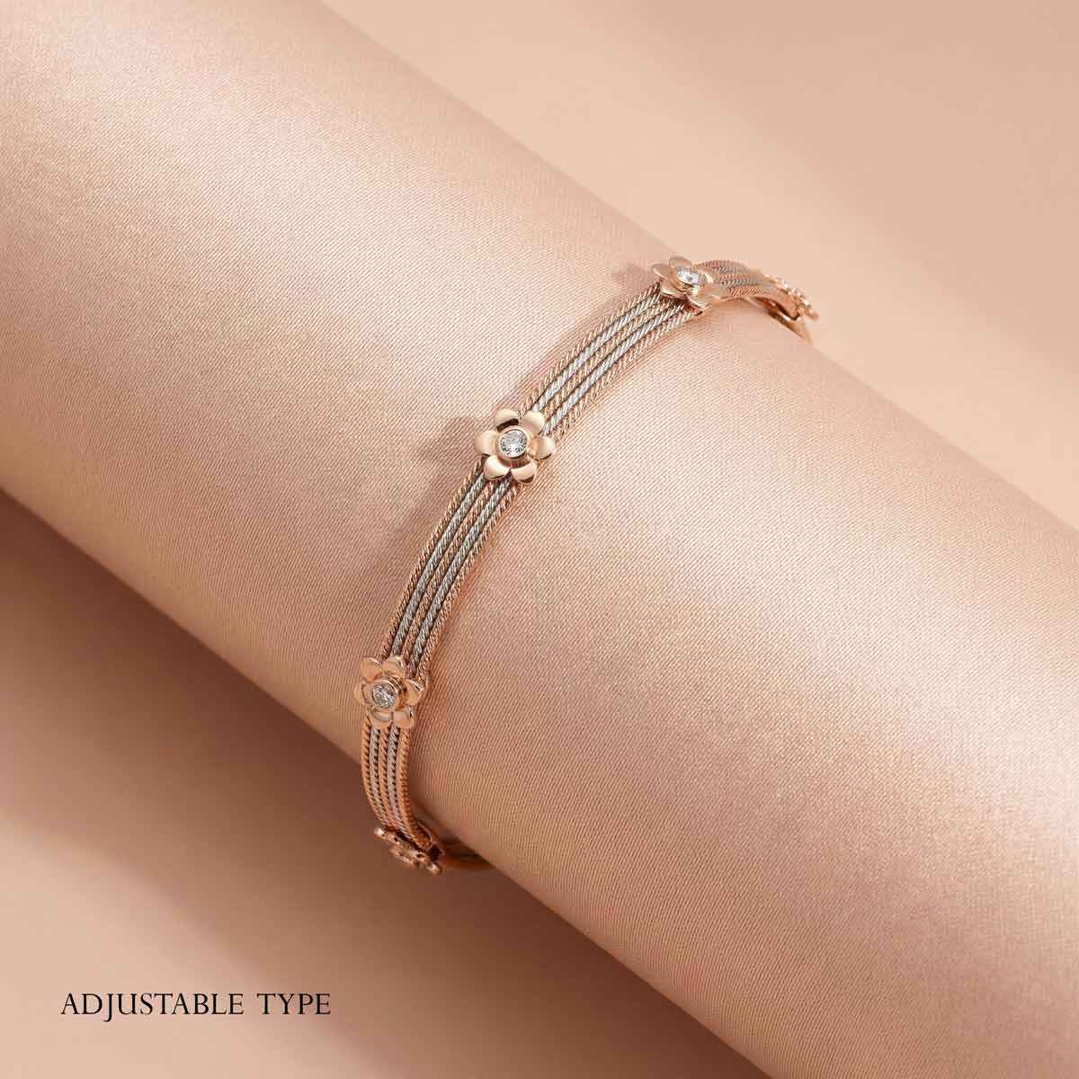 Featuring a unique dual-tone twisted cable design adorned with sparkling floral motifs, this adjustable bracelet offers a perfect blend of modern style and timeless heritage. A stunning addition to your daily luxury collection.”