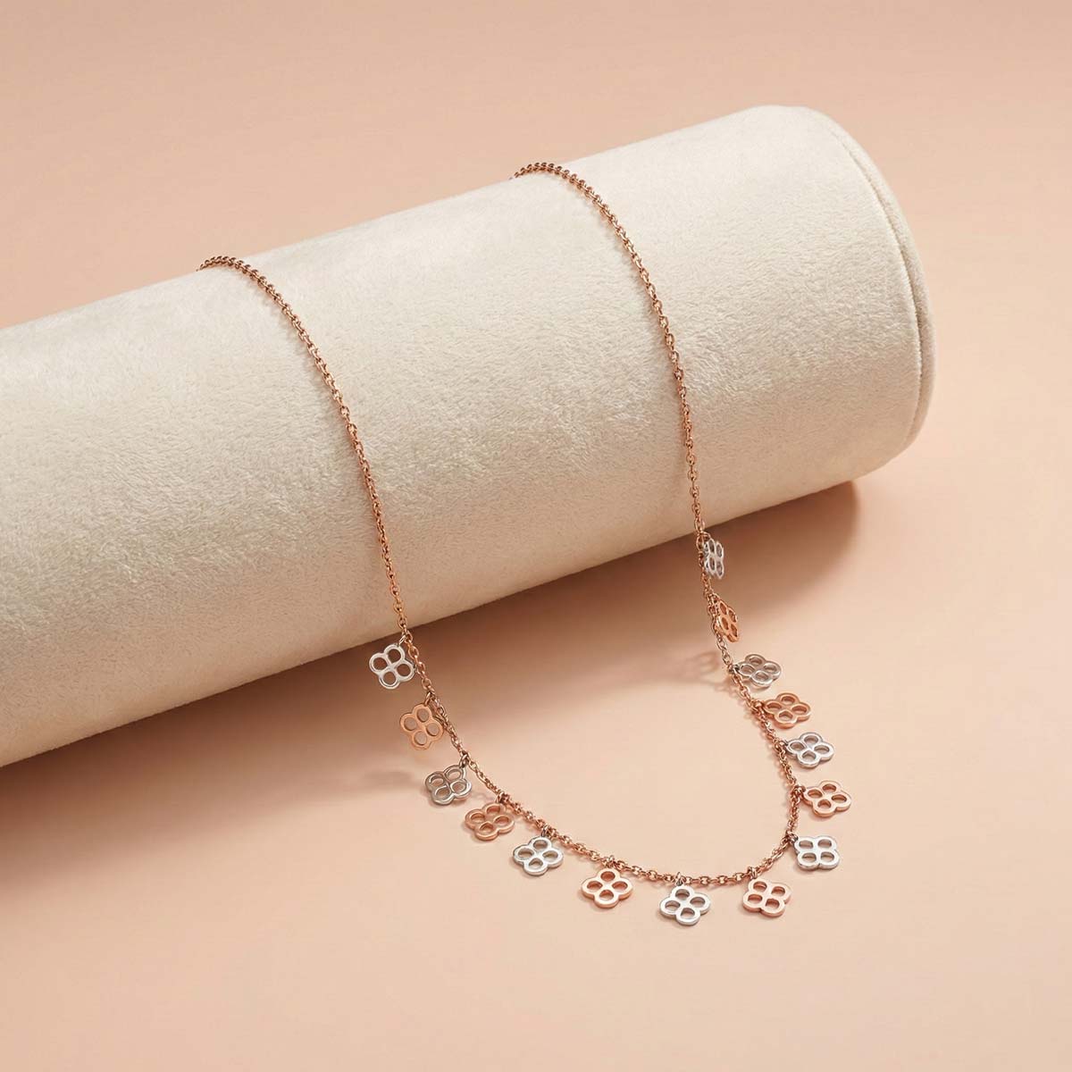 “Celebrate an unbreakable bond with our 18k gold interlocking heart necklace. Featuring a delicate rose gold chain and elegant heart pendants with a soft pearl finish, this piece is the perfect blend of heritage craftsmanship and modern romance. Shop this timeless gift at OVJ Jewels—shipping worldwide from Dindigul.”