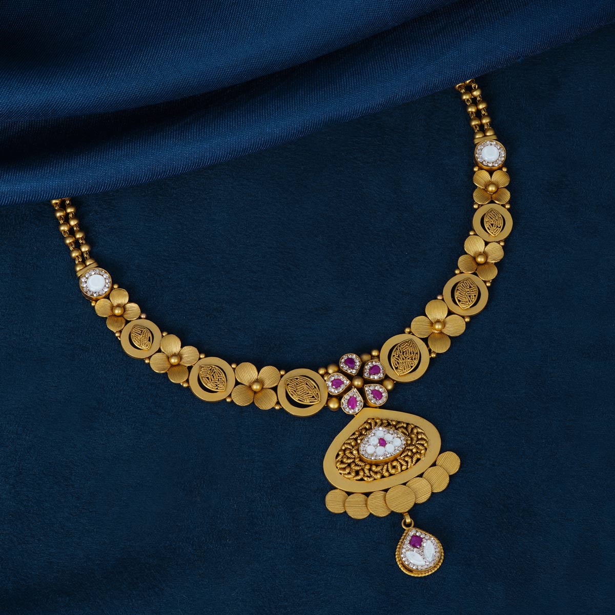 Be the first to review “22K Gold Filigree Necklace with Floral Gemstone Design