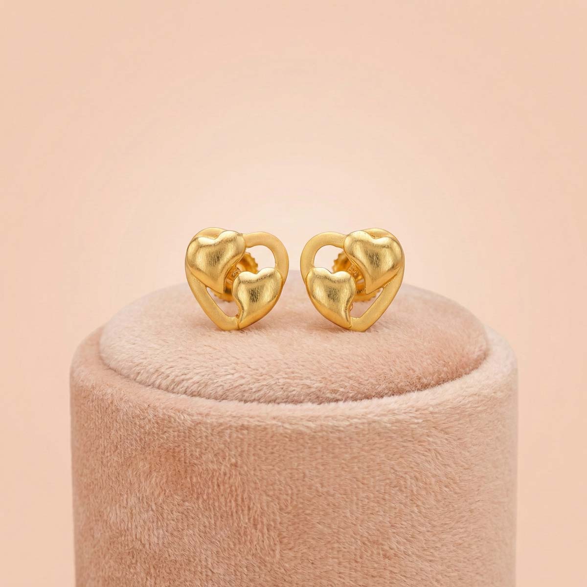 “Shop these 22K gold minimalist double heart stud earrings at OVJ Jewels. Lightweight, daily-wear gold tops crafted with heritage precision since 1942. Perfect for gifting.”
