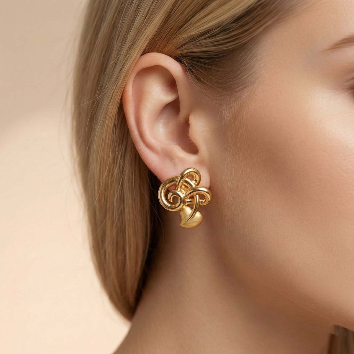 Be the first to review “22K Gold Love Knot Heart Swirl Stud Earrings