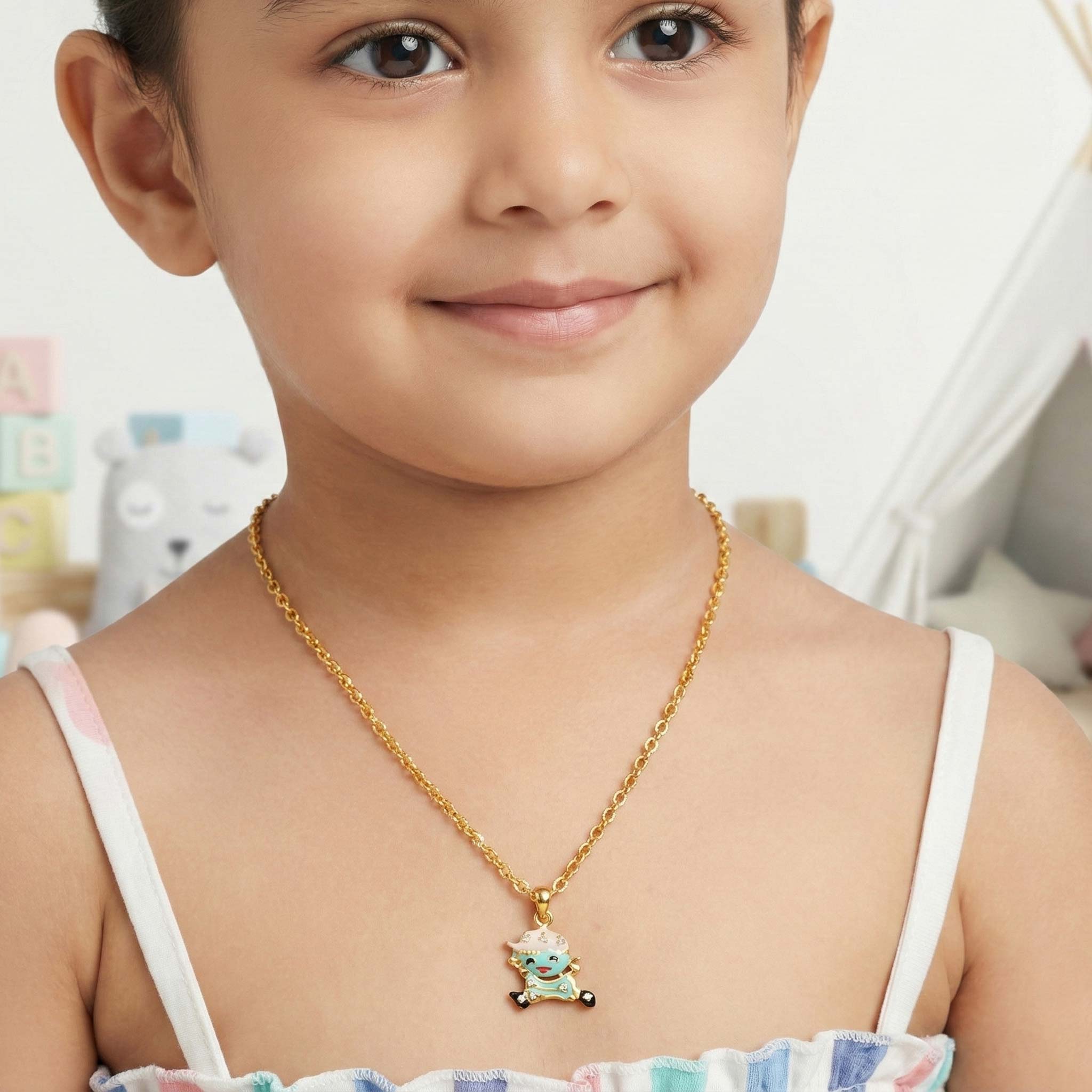 22k Gold Playful Cartoon Character Pendant Chain for Kids