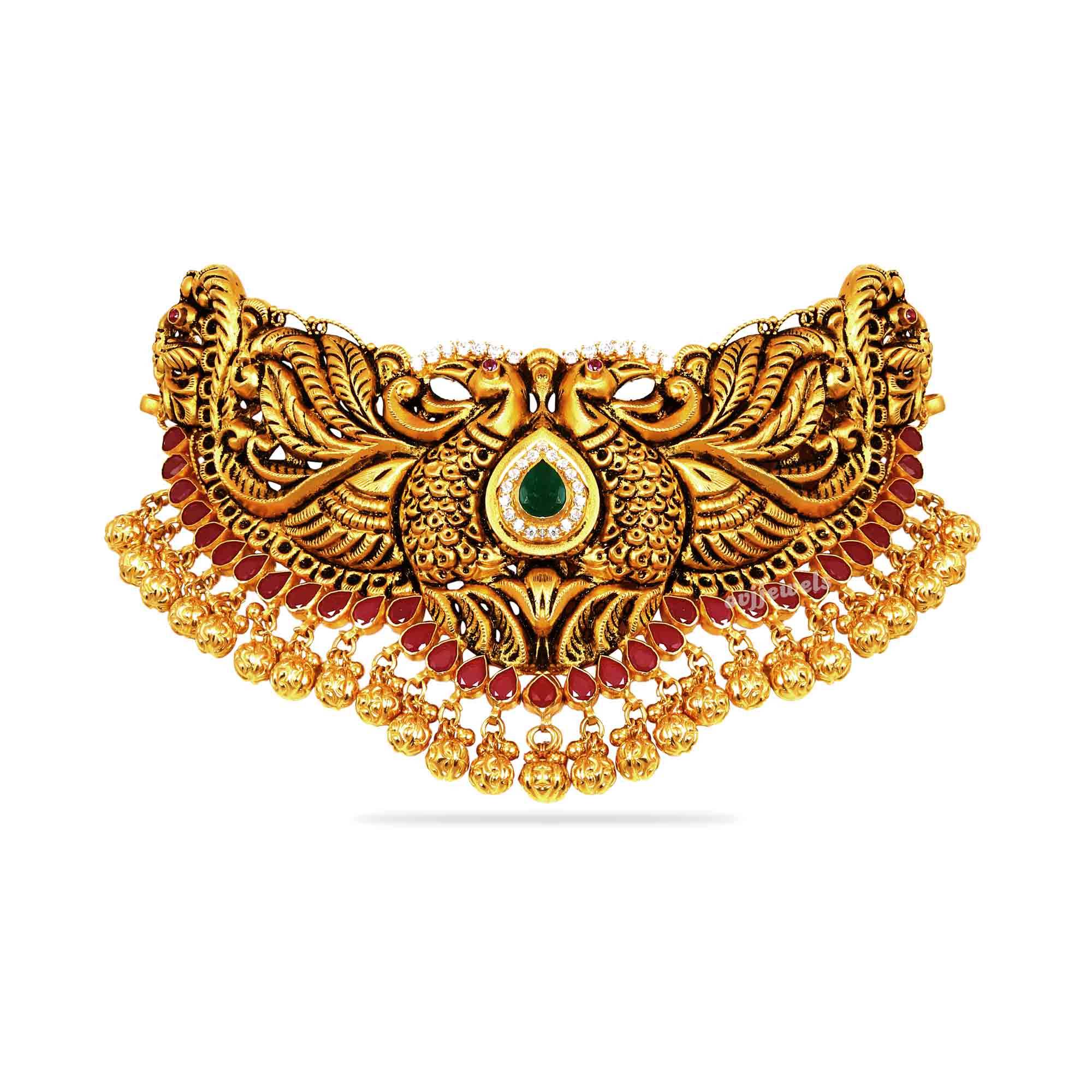 Bring out the bird in you with this antique peacock short necklace adorned with stones.