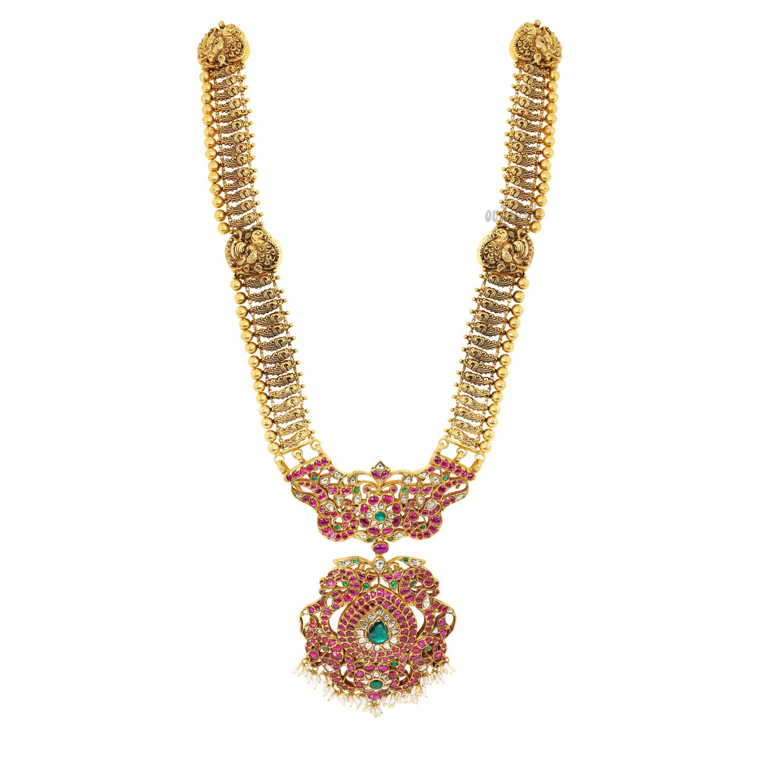 916 gold long necklace handcrafted with superior quality by top-class karigars of India.