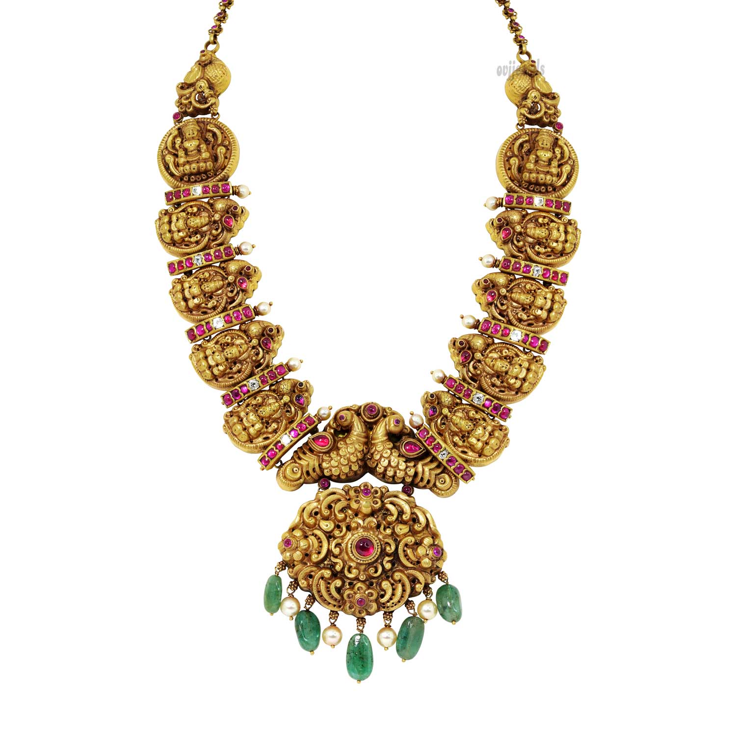 916 gold Lakshmi long necklace handcrafted with superior quality by top-class karigars of India.