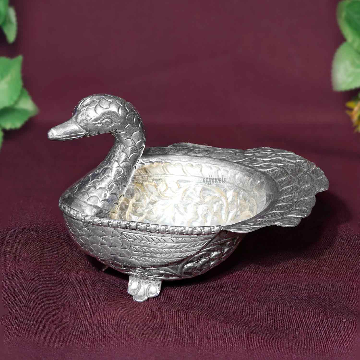 The antique silver swan bowl stands as a symbol of grace and elegance, making it a striking centerpiece for special occasions, weddings.