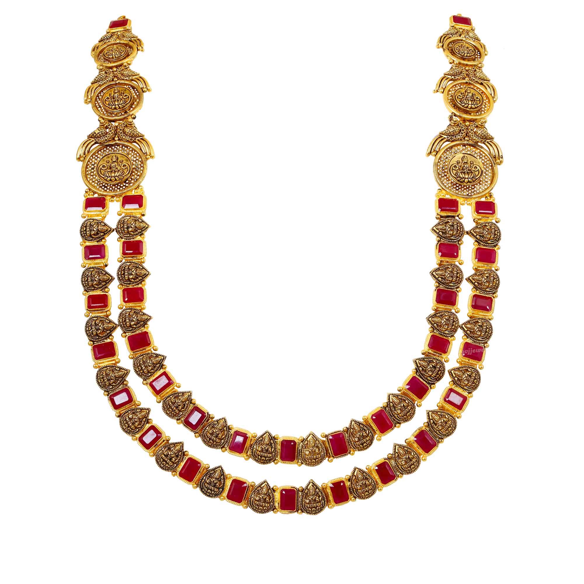 True beauty transcends language. These lakshmi illustrated with vibrant ruby stones is a pefect testament.