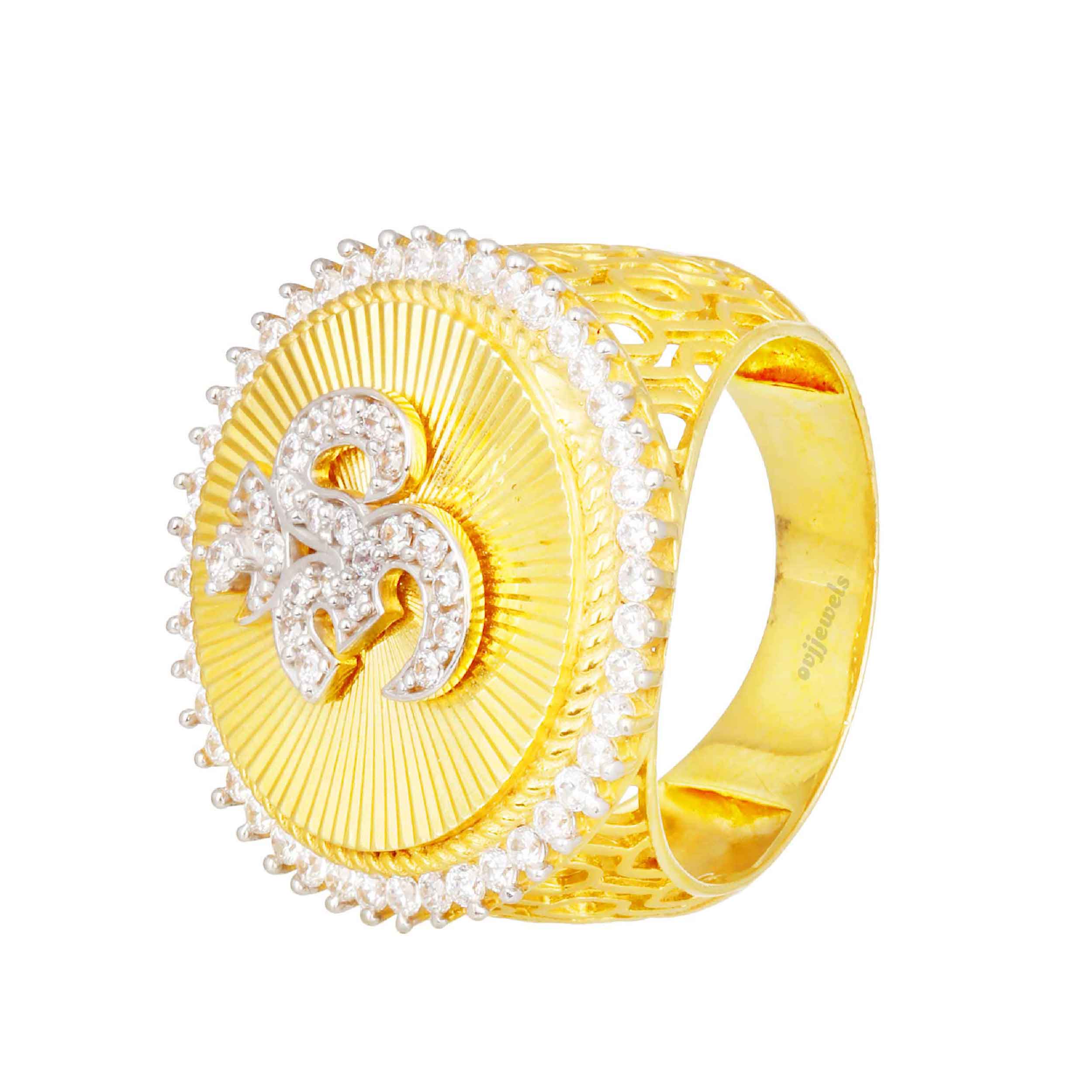 Look ravishing in this pretty-looking ring with an intricate om design forged from 22k yellow gold.