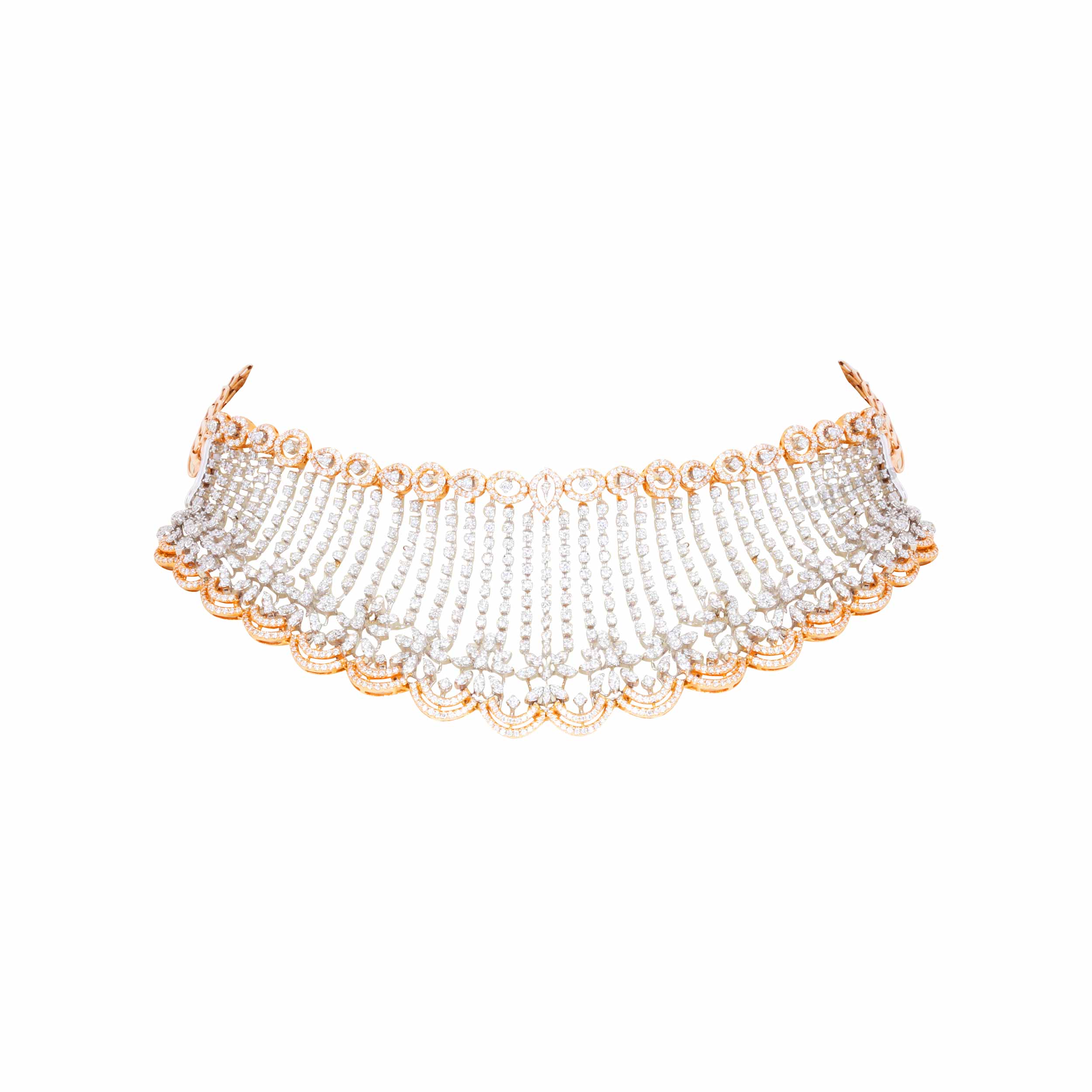 The world will pause and admire you as you step out in this glorious 18k rose gold necklace with diamond stones.