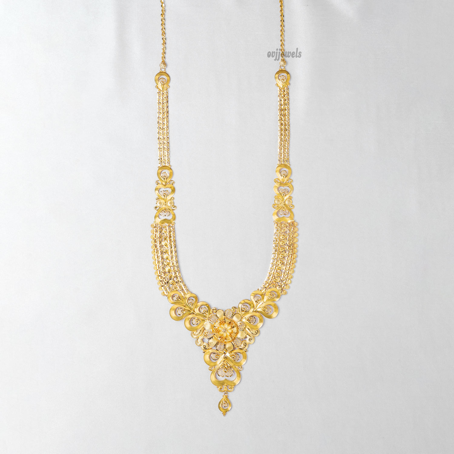 This 22kt gold long necklace can be worn with any traditional attire