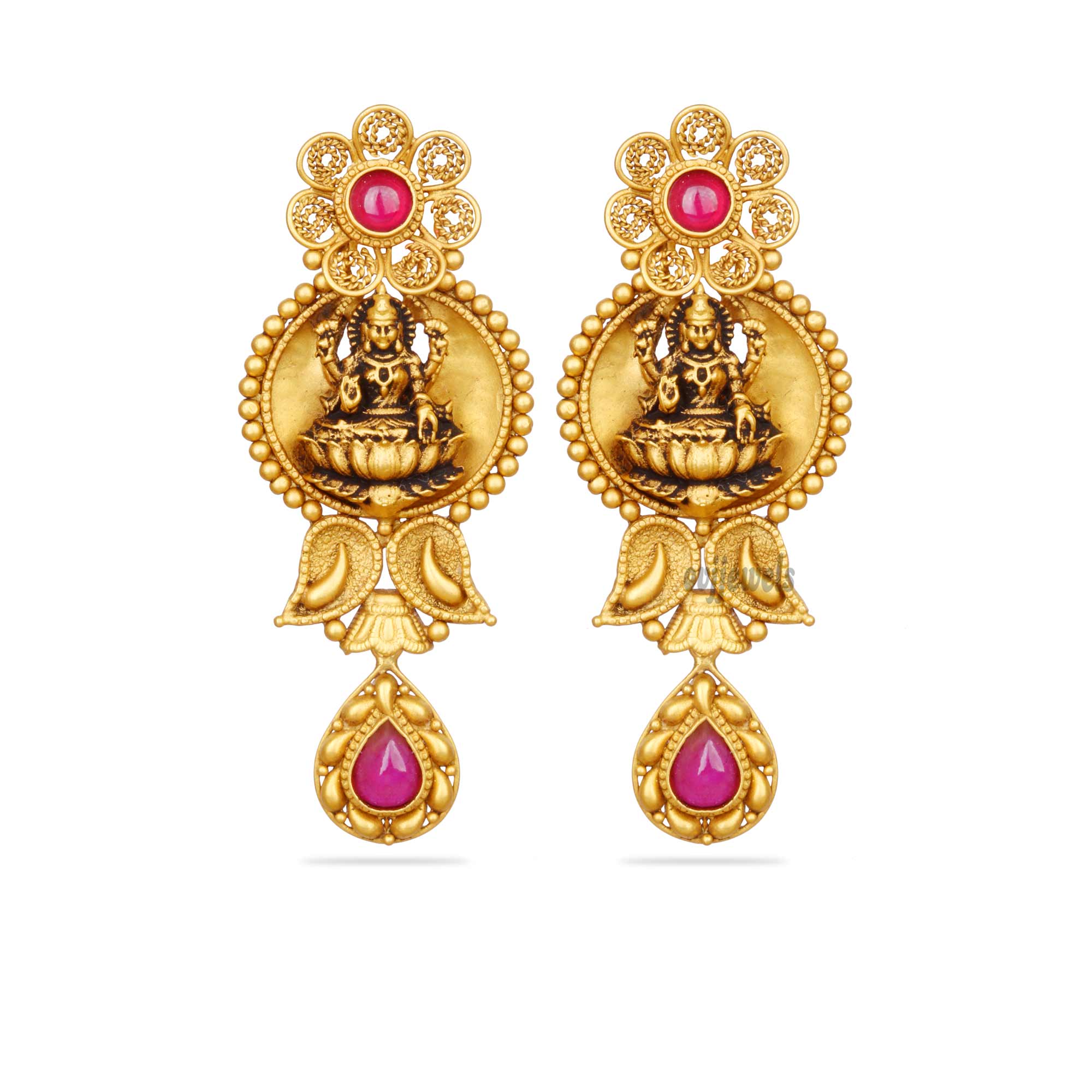 Carry his divince essence close to your soul in this charming 22k yellow gold lakshmi earrings.