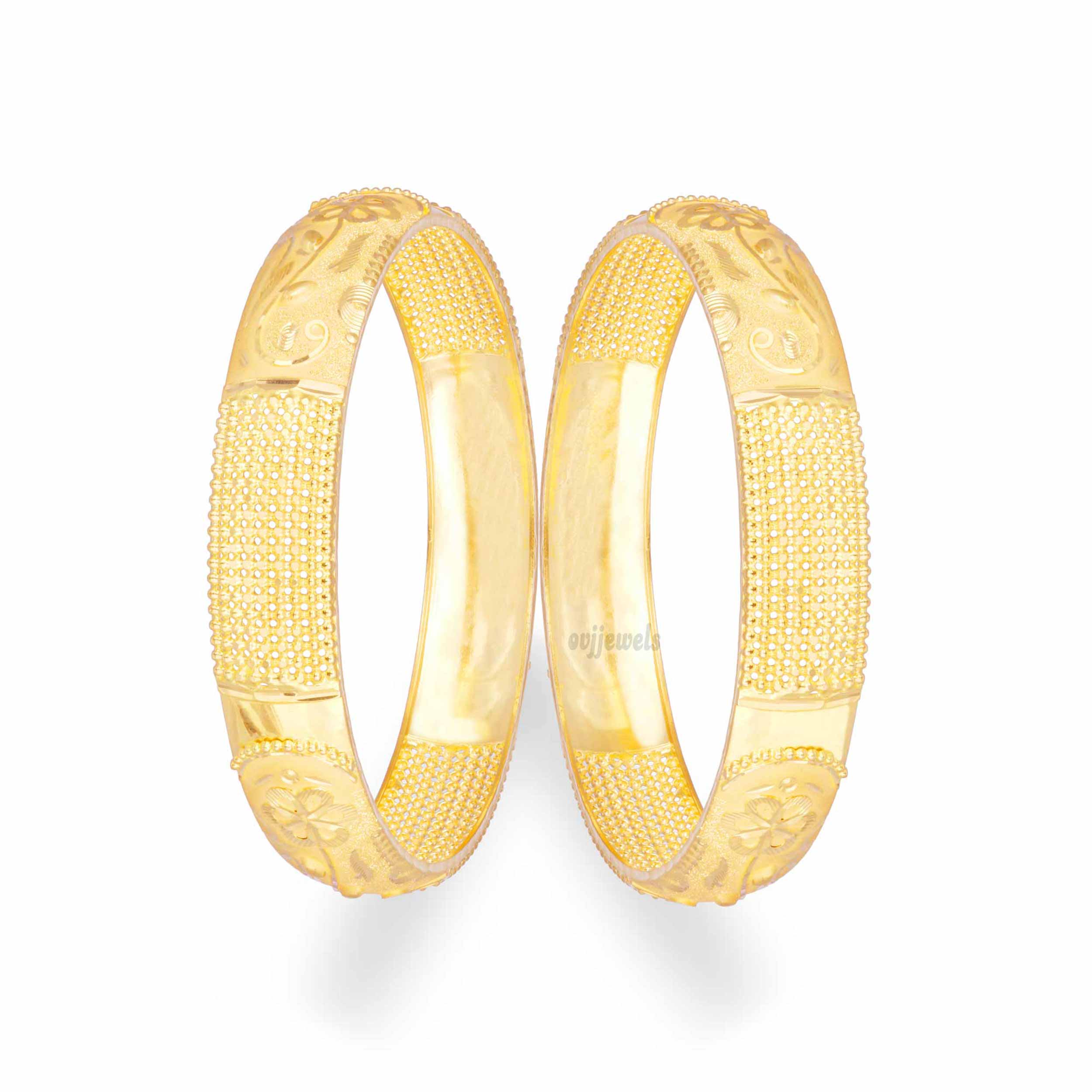 Exuberant circles inspire this 22kt yellow gold fascinating bangle design.