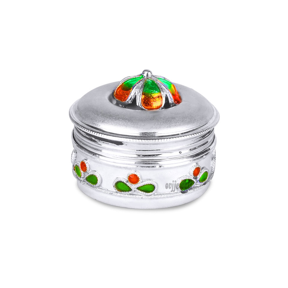 Beautifully designed silver kumkum chimil. The hanging balls add a charm to the kumkum chimil.