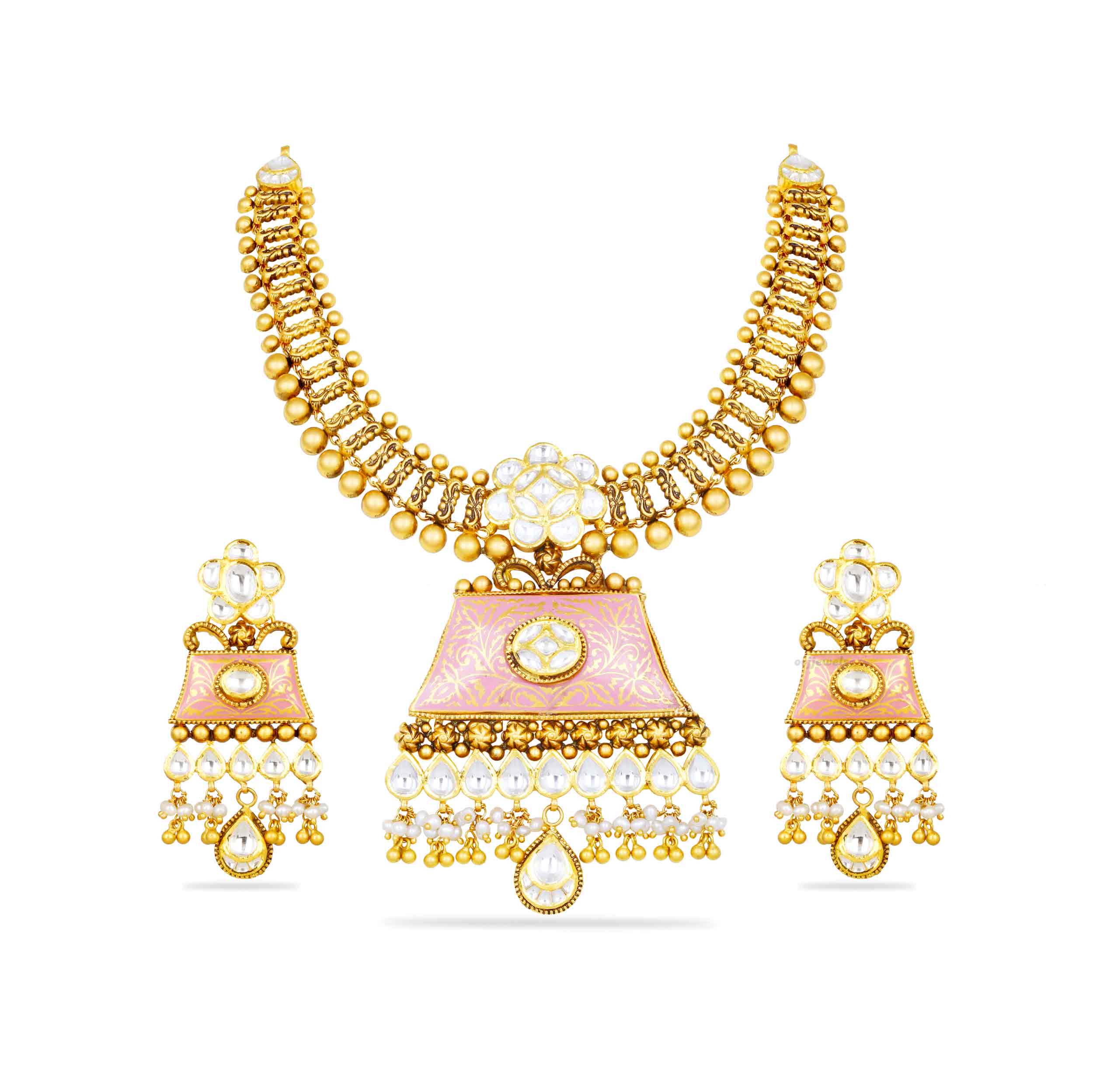 Experience the grand ur of beautiful short necklace with are detailed to the best.