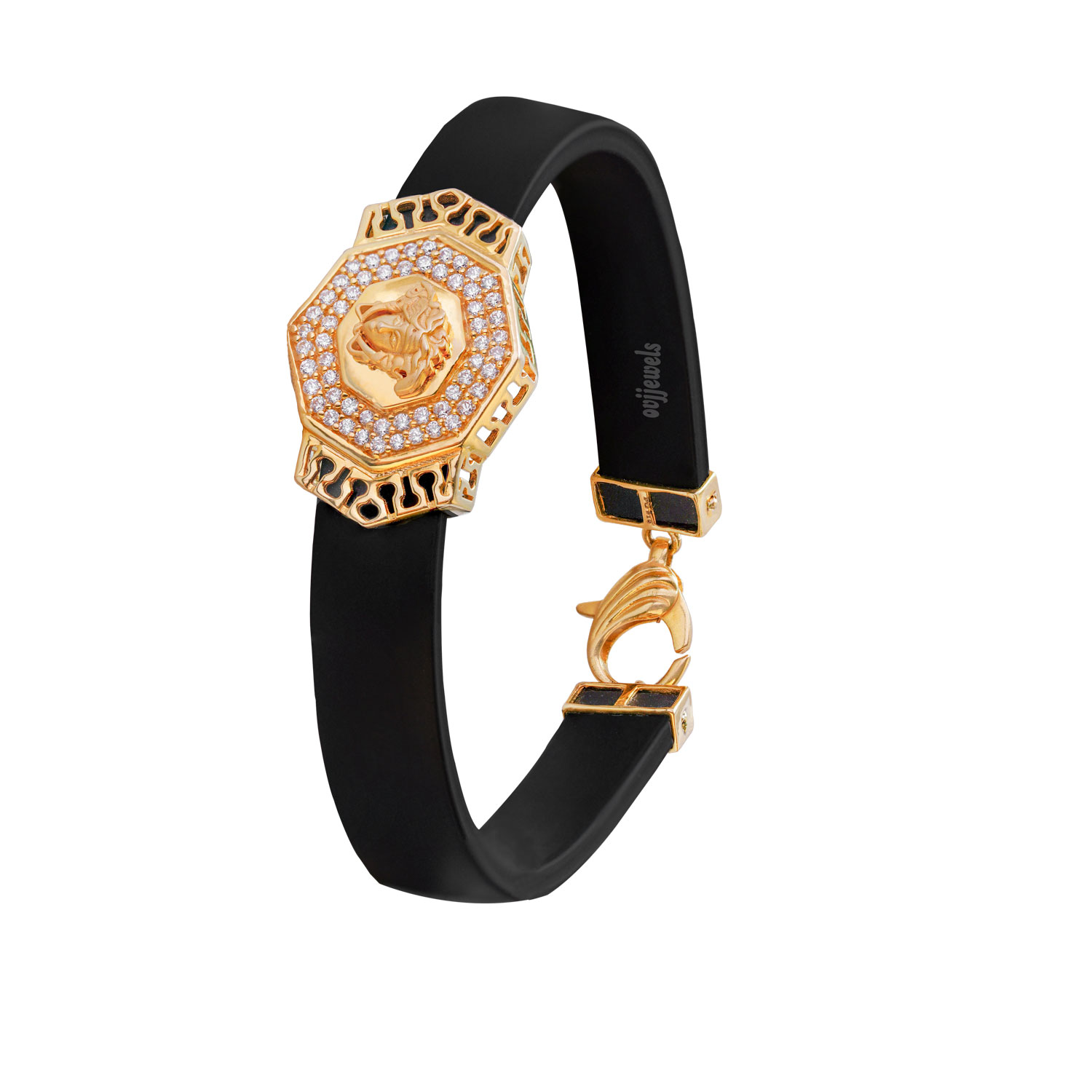 A 22k yellow gold men’s kaapu adorns rhodium polished anchor as its motif crafted in rubber tube.
