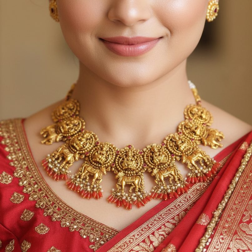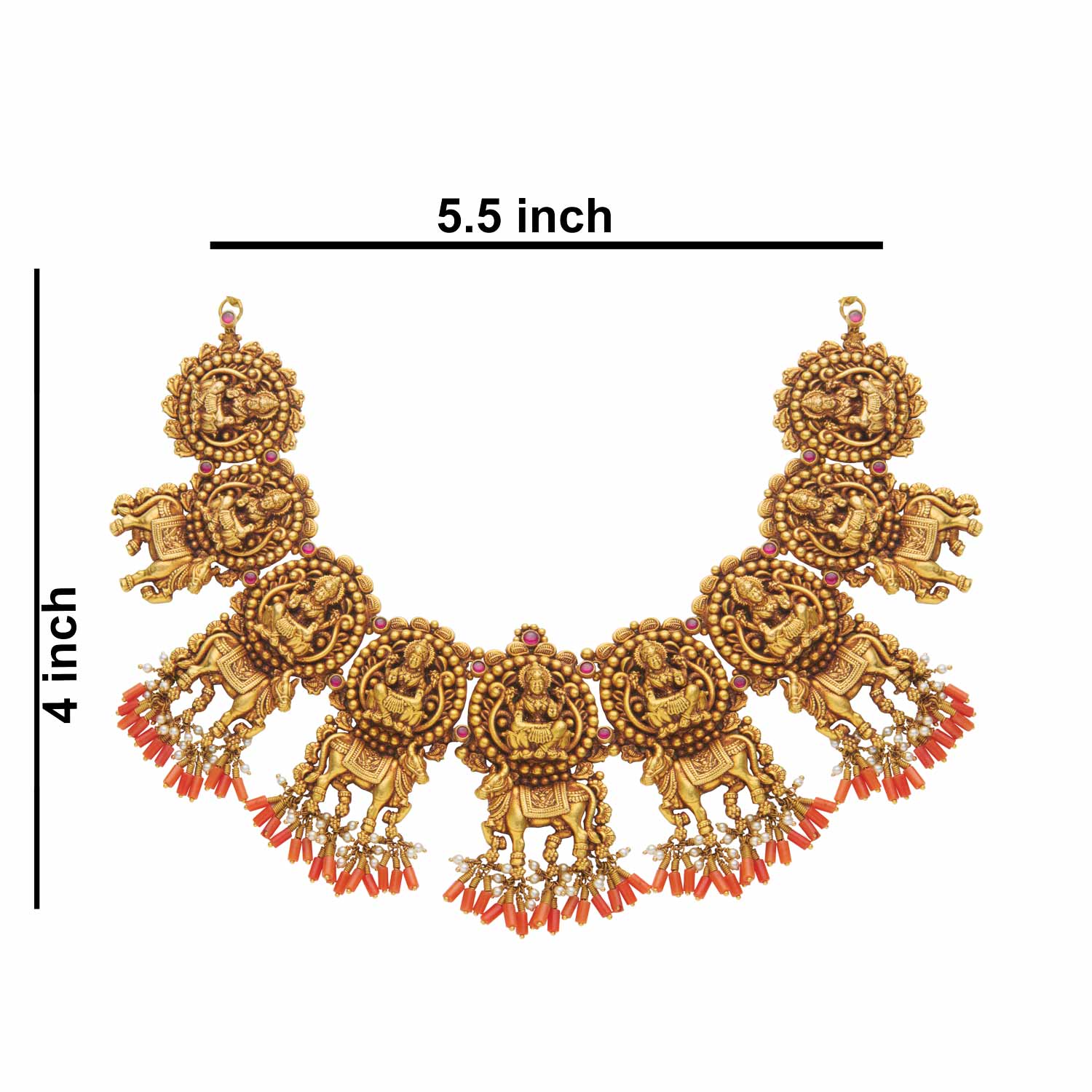 Divine Lakshmi Nakshi Gold Necklace with Coral Drops