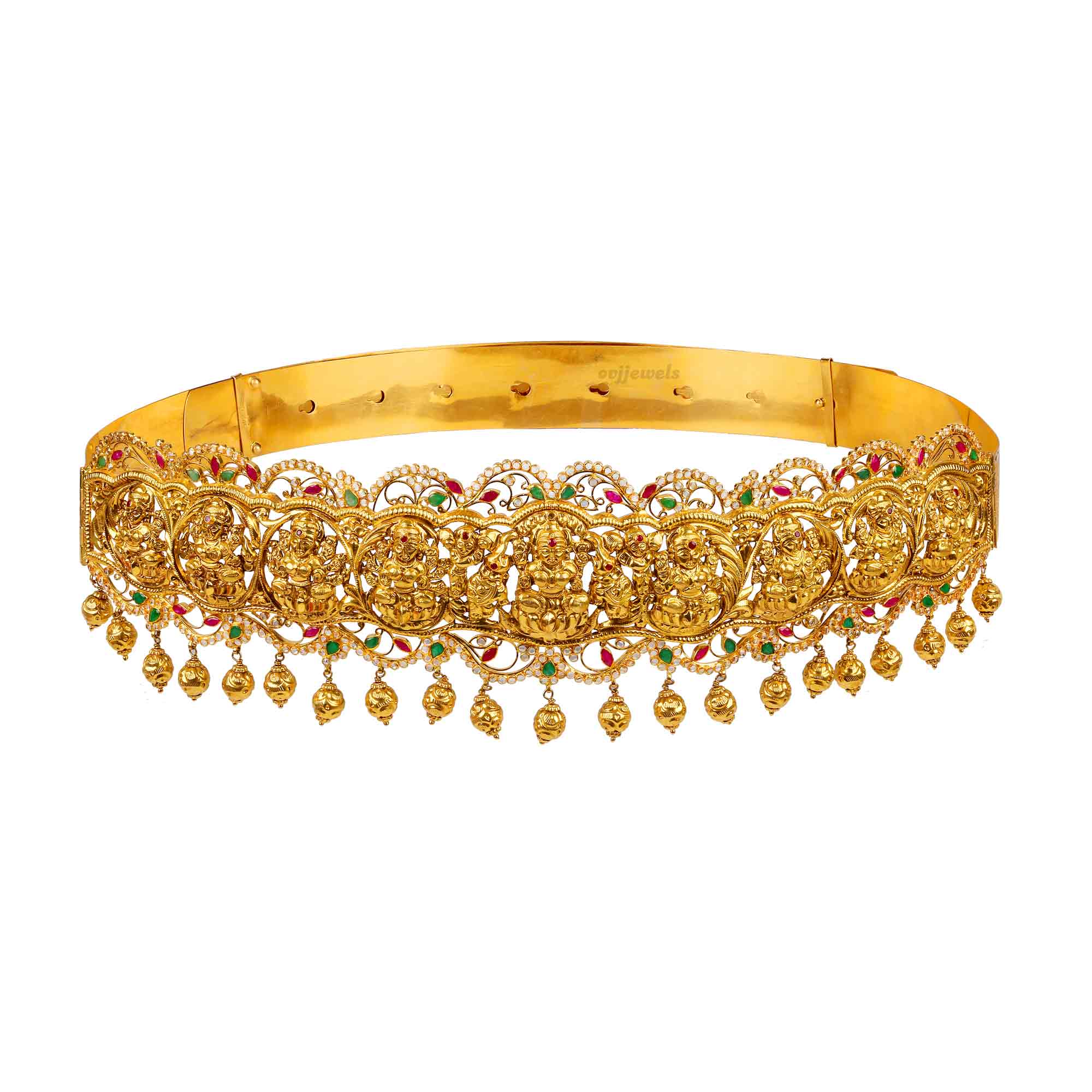 Keep the divine power close to your heart with this 22k gold ottiyanam for lakshmi nagas work.