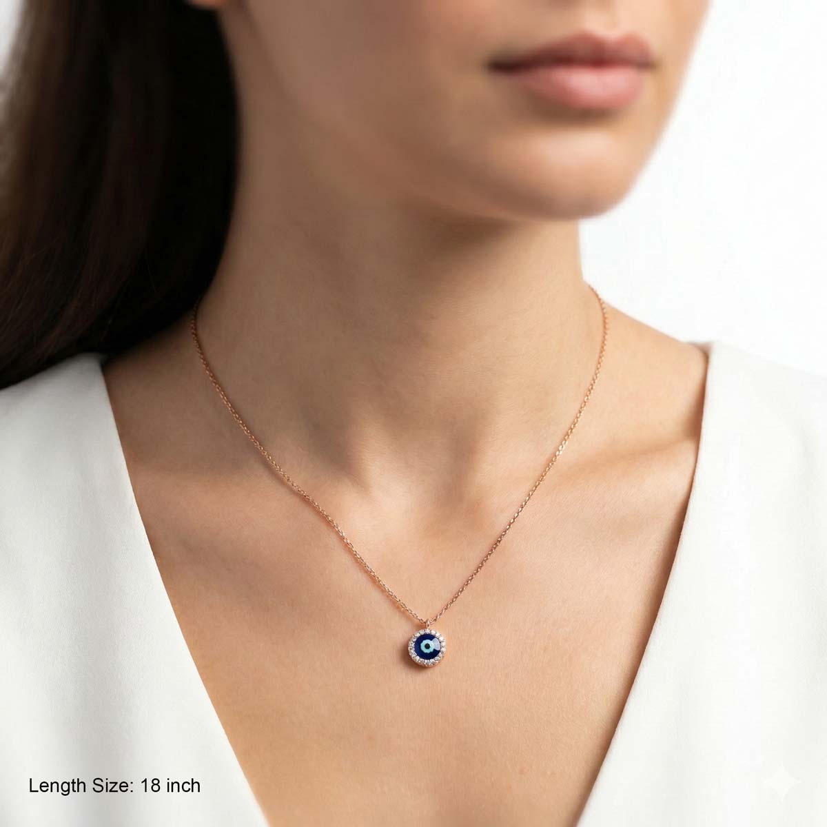 Elegant 18K Rose Gold Evil Eye Diamond Pendant chain