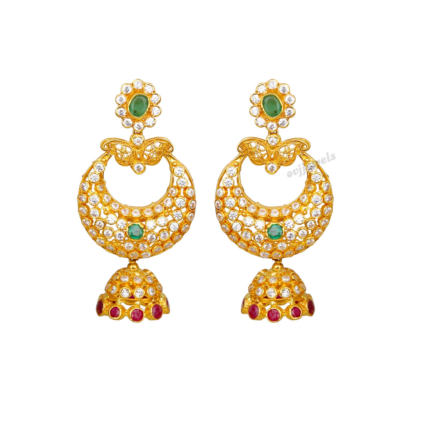 Indulge in a beautiful pair of chandbali earrings, embellished with little jhumkas.