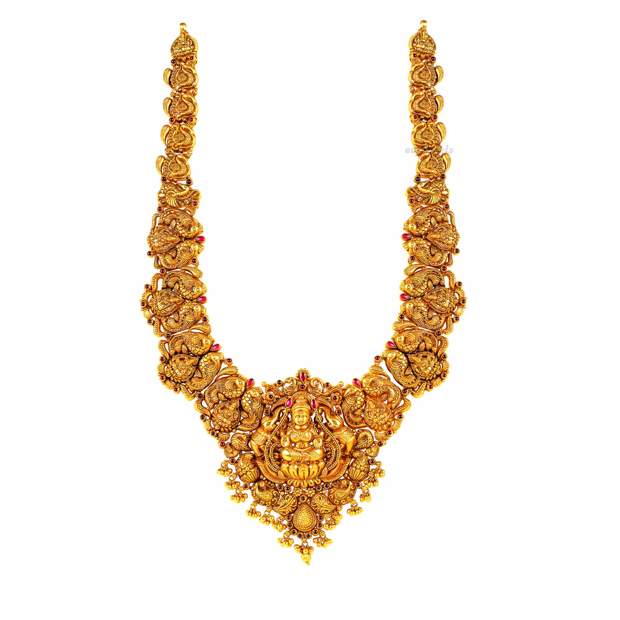 Exquisitely beautiful lakshmi in elegant 22k gold long necklace inspired of Designs.