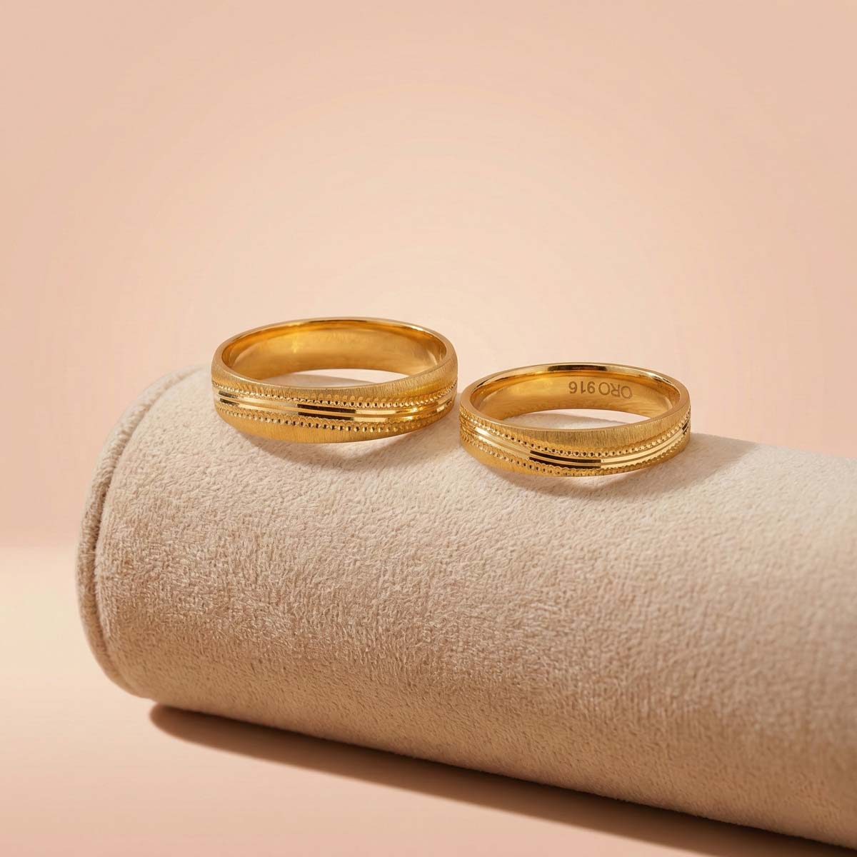 Eternal Bond Matte Finish 22K Gold Couple Rings