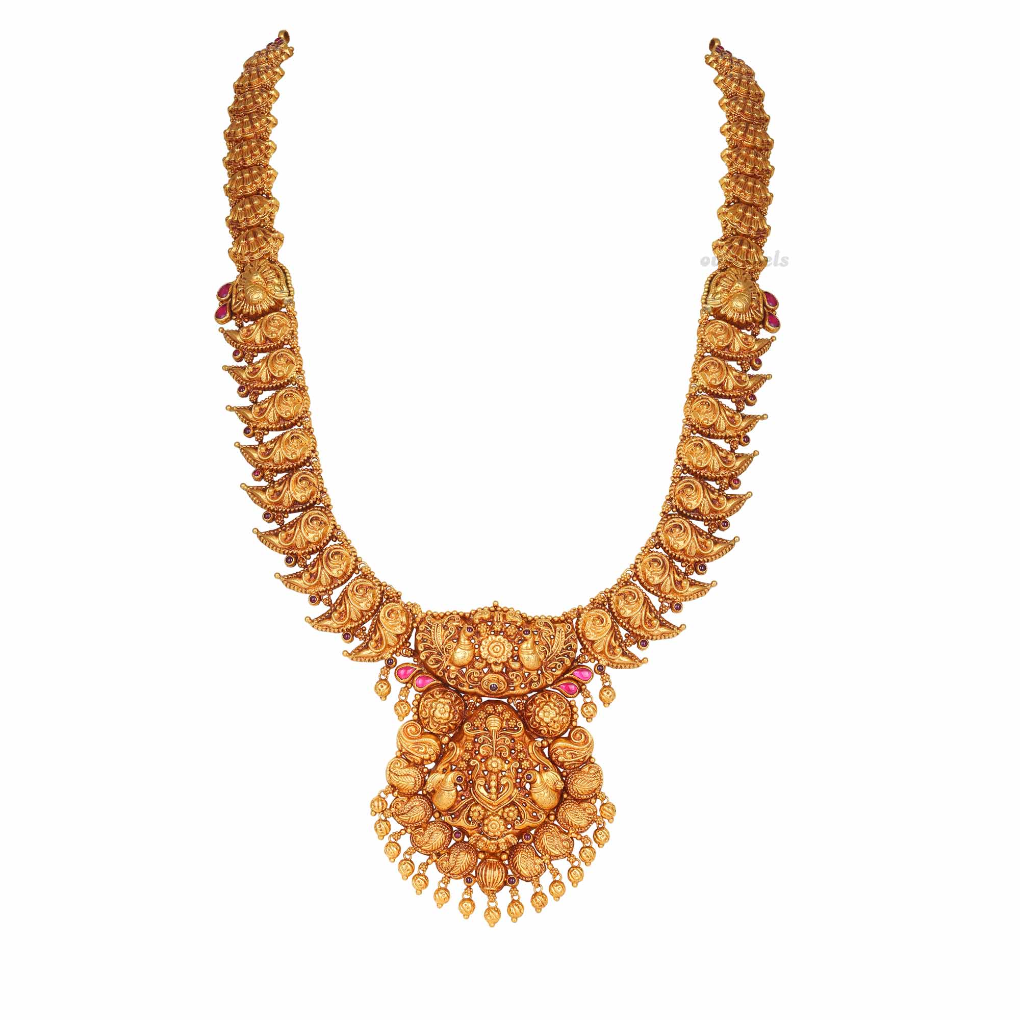 ethereal charm to your look with this resplendent 22k long necklace adorned with kemp stones.