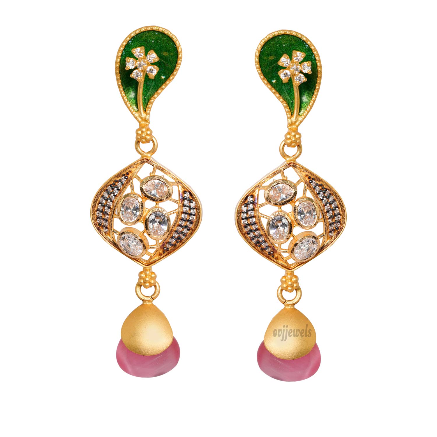 A pair of 22kt gold party-wear earrings.