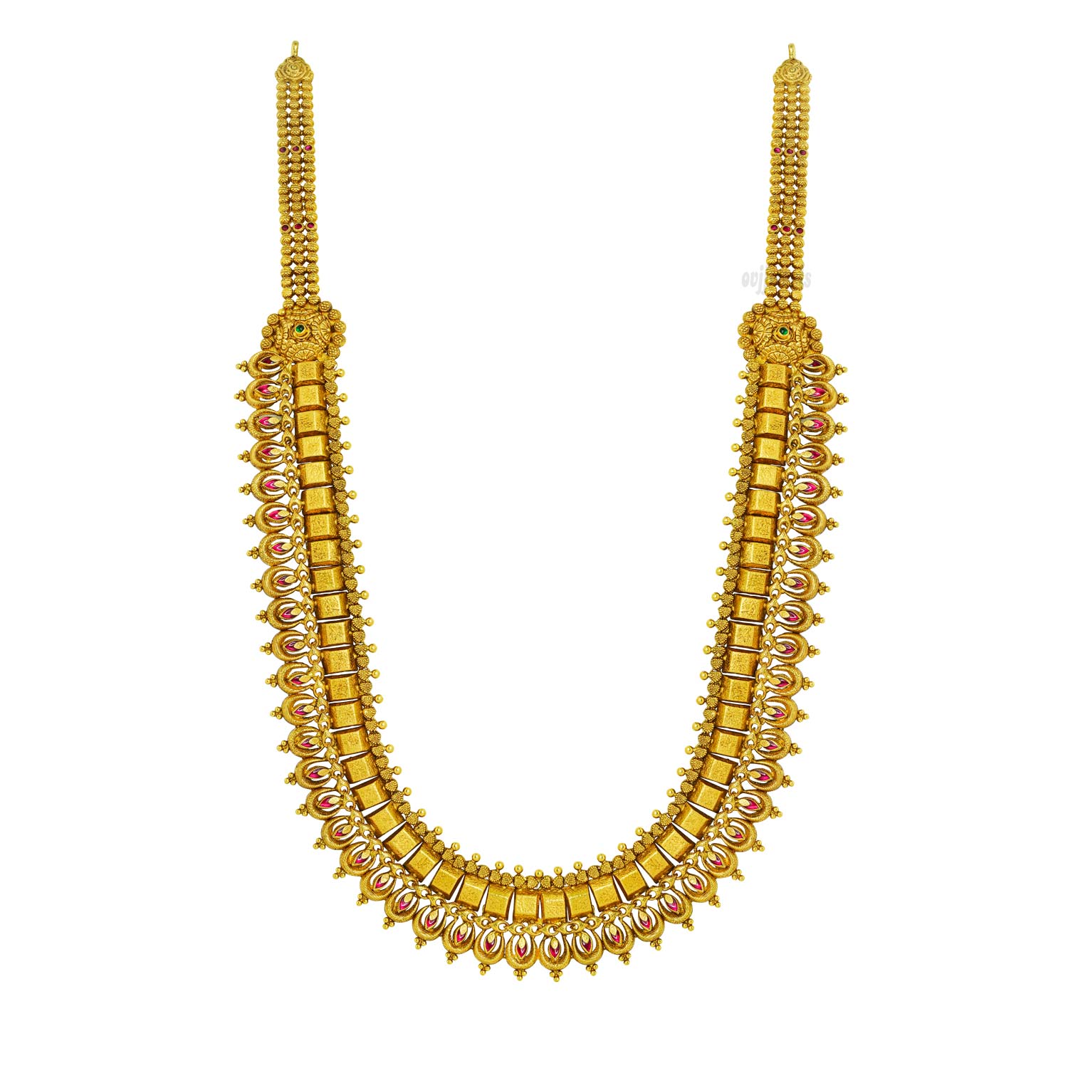 916 gold long necklace handcrafted with superior quality by top class karigars of india