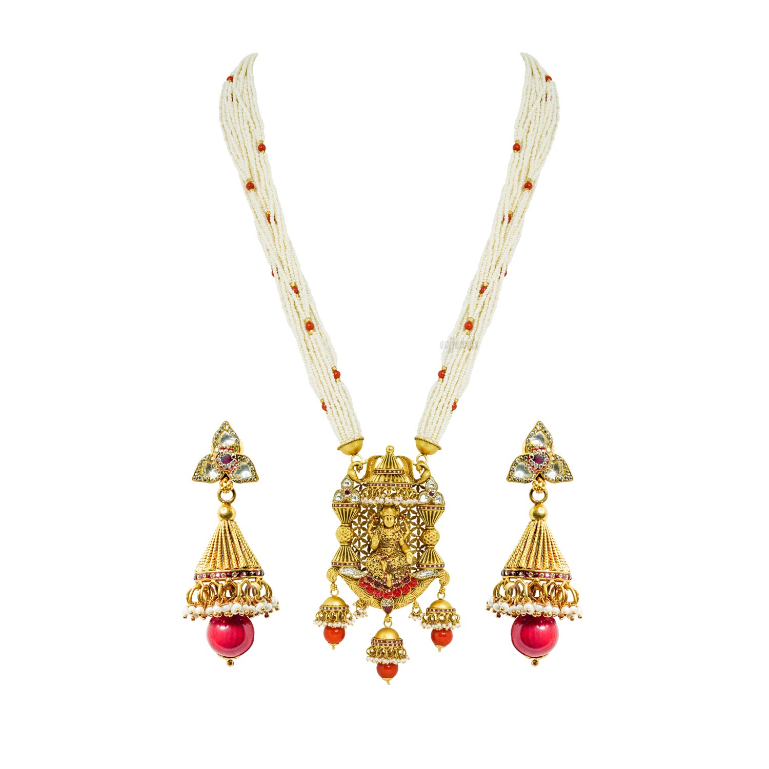916 gold long necklace handcrafted with superior quality by top class karigars of india