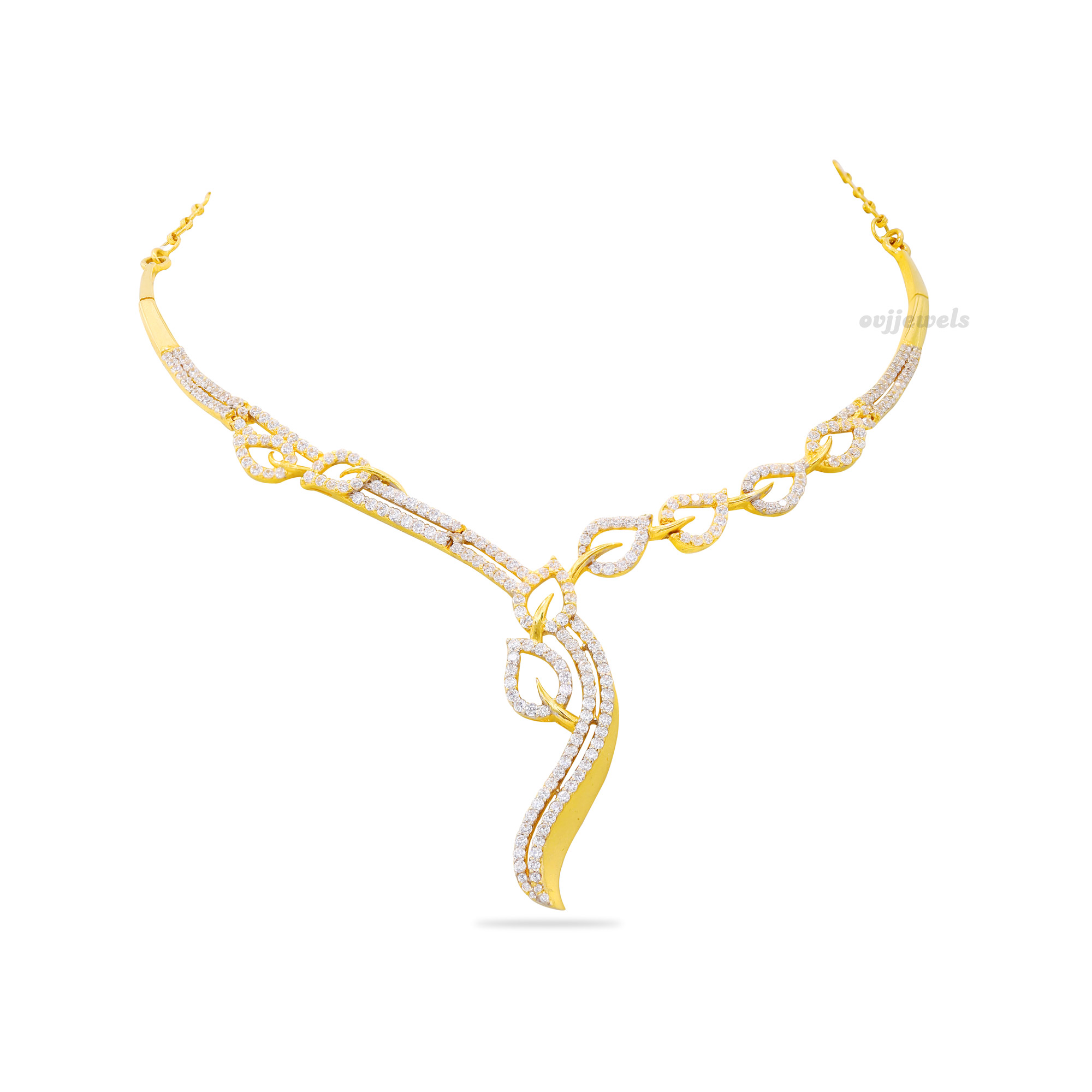 The yellow gold necklace is studded with cubic zircons Fastens with a magnetic clasp.