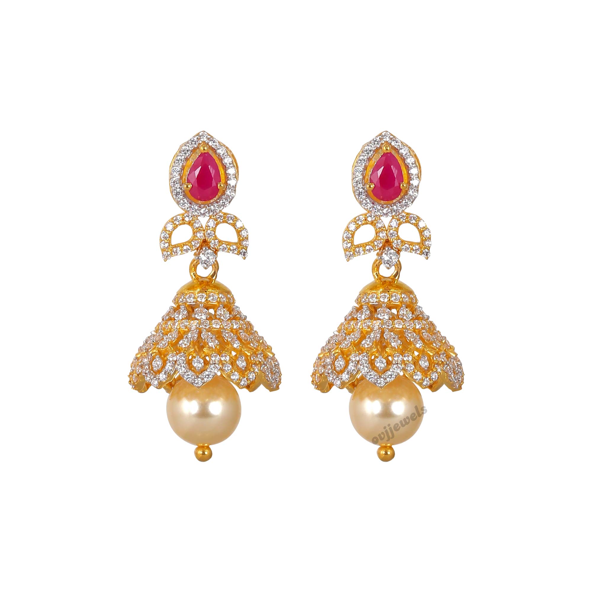 Dazzle any evening with this simple and beautiful zircon jhumkkas.