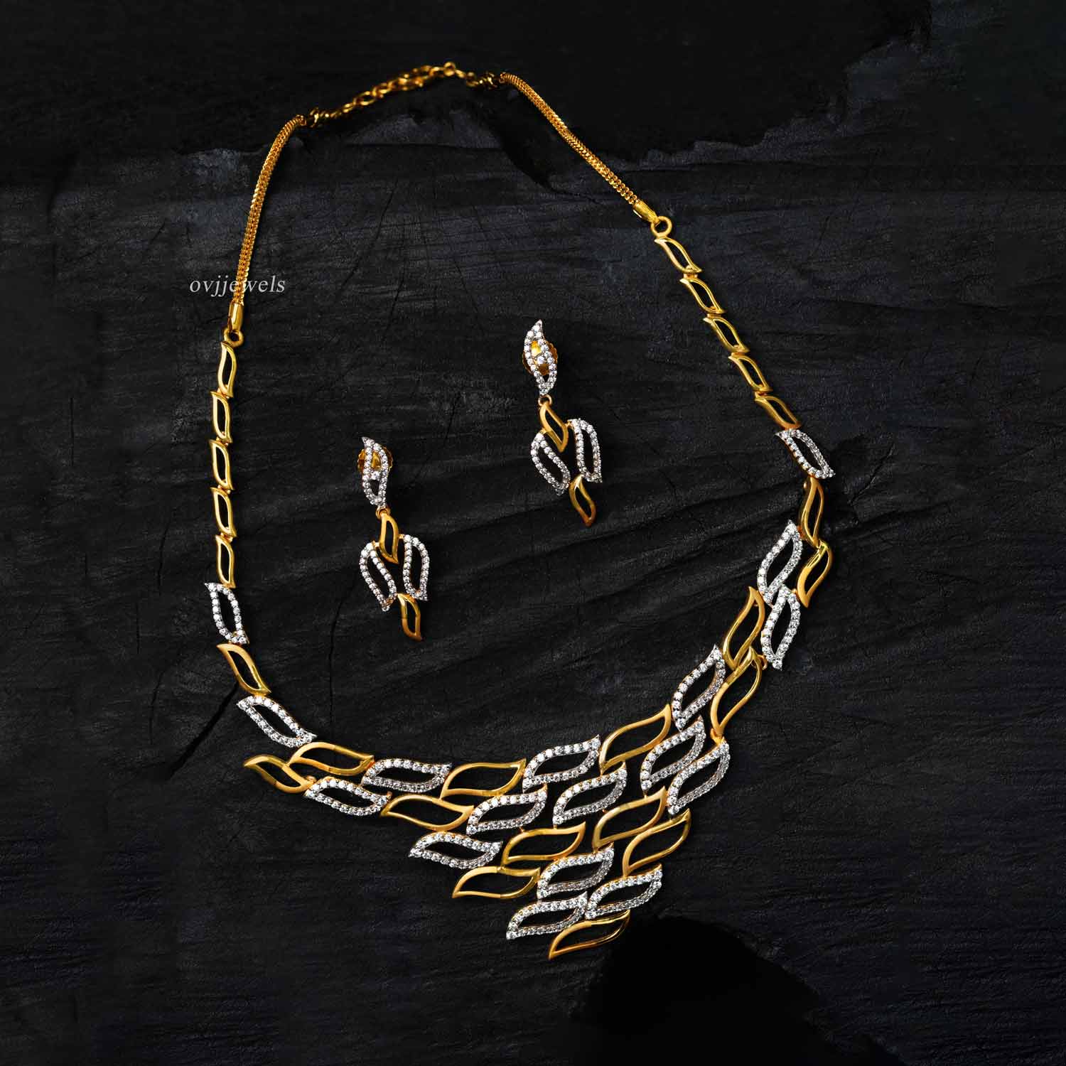 Gold designer zircon stone short necklace with earrings