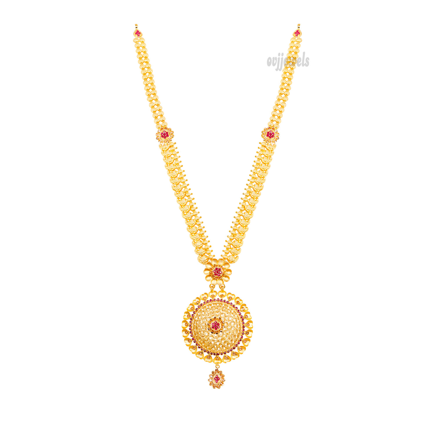 916 BIS Hall mark Gold flower heart pendent fancy stone long necklace.