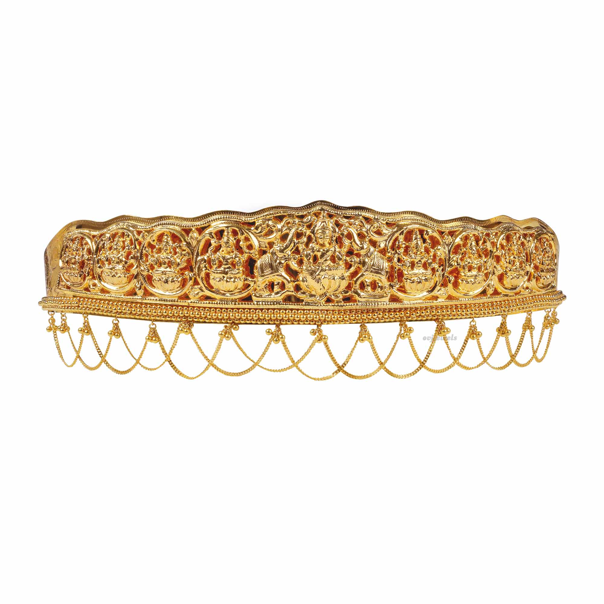 A handcrafted Gold ottiyanam adorned with spectacular nagas work and embedded with chain designs.