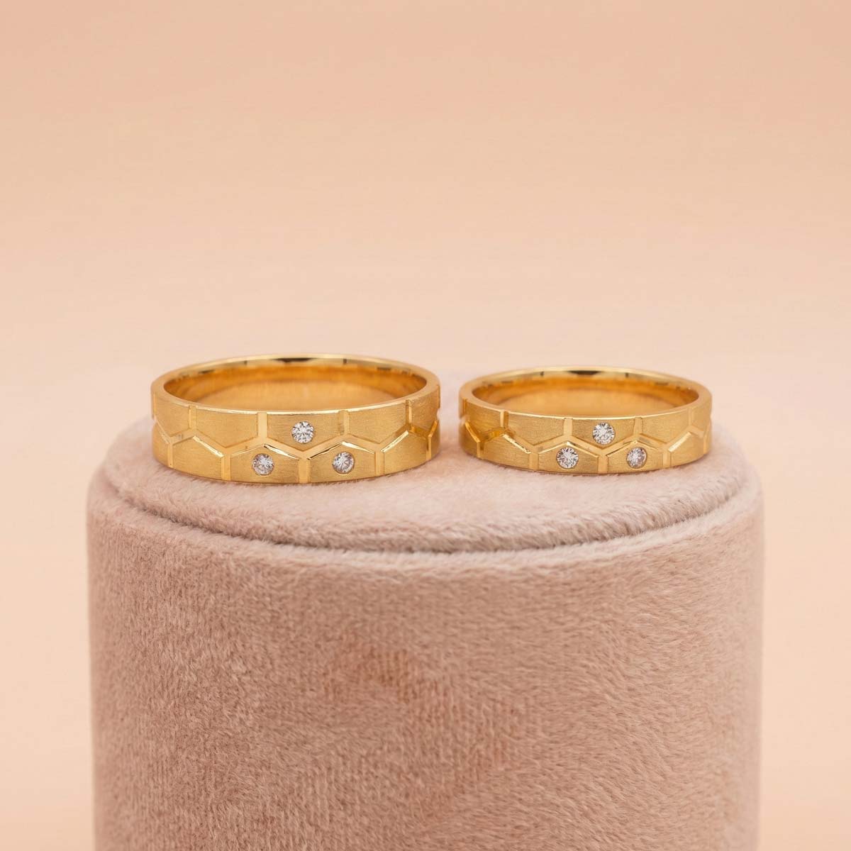Honeycomb Harmony 22k Gold Minimalist Couple Rings
