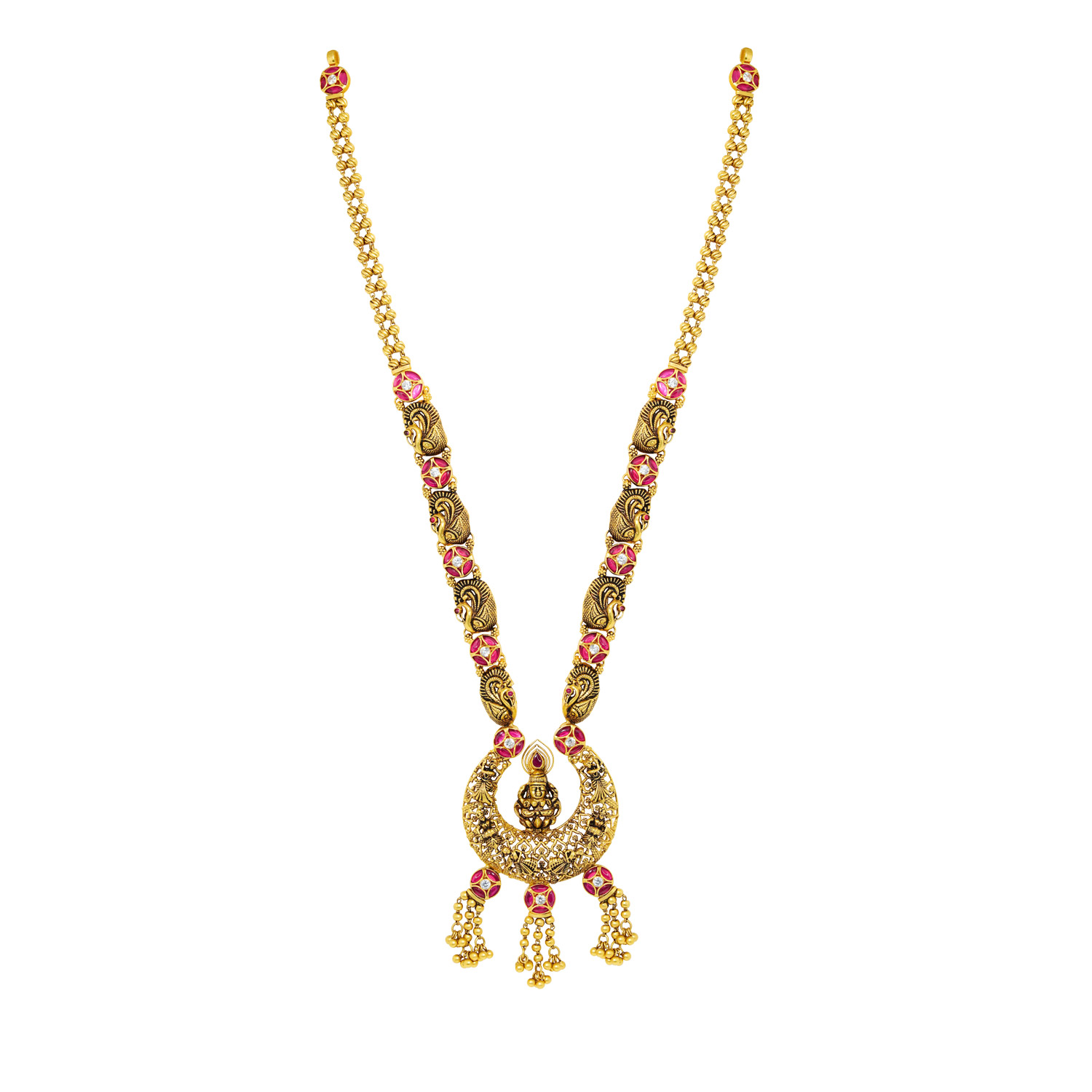 916 gold long necklace handcrafted with superior quality by top class karigars of india