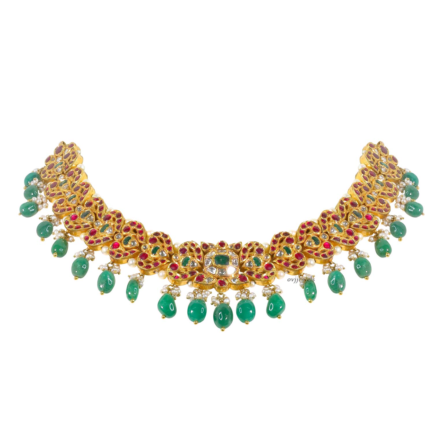 916 gold short necklace handcrafted with superior quality by top class karigars of india