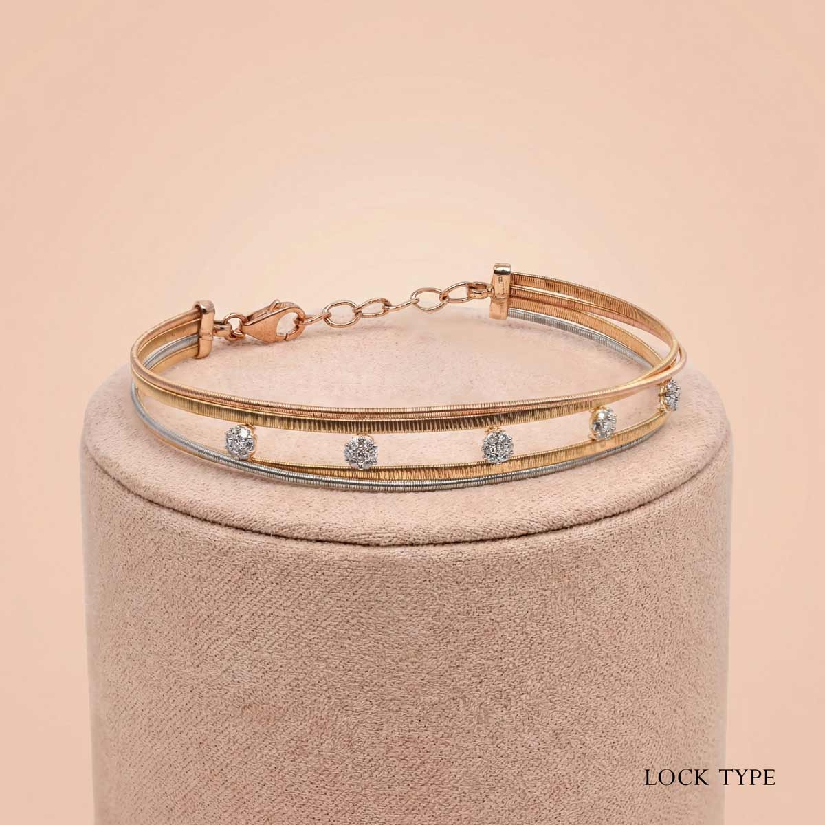 Elevate your everyday style with this 18k gold minimalist bracelet from OVJ Jewels. Featuring a chic dual-tone wire design with sparkling diamond accents. Shop now