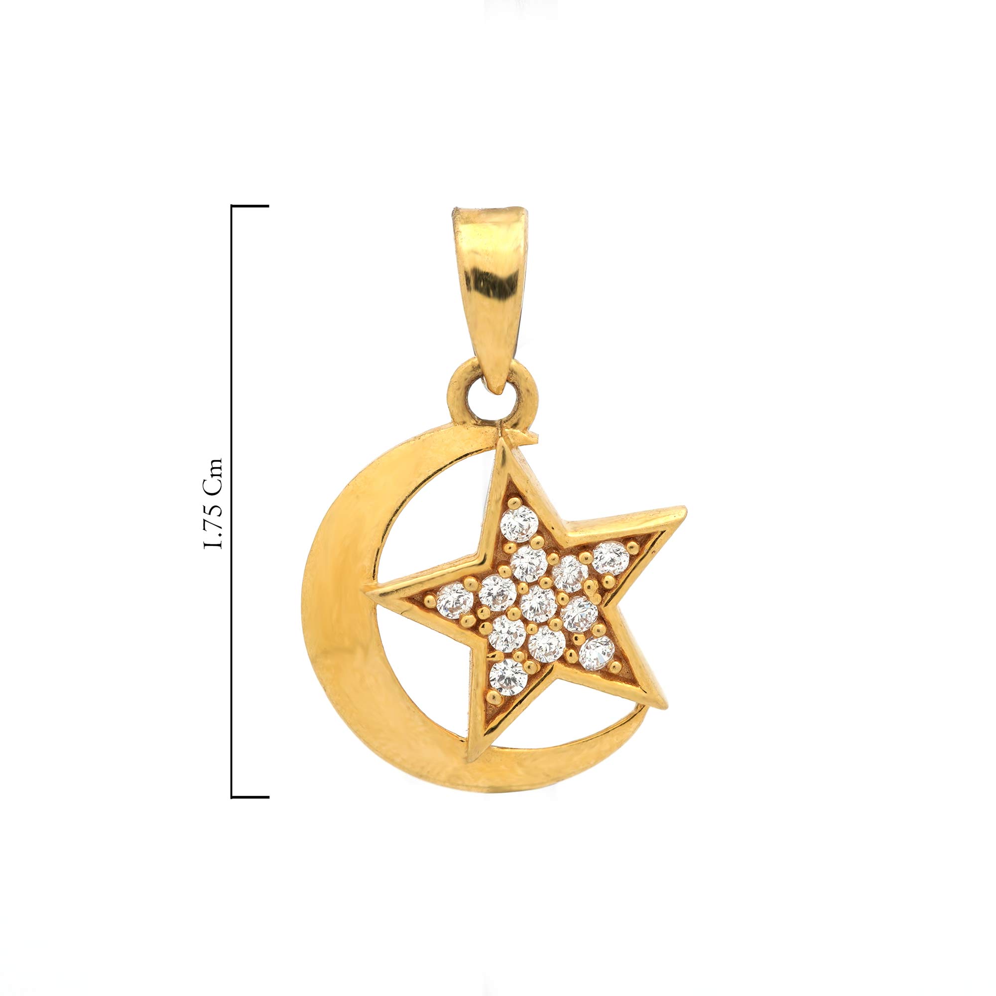Moon with Star Gold Pendant – Elegant Diamond Design