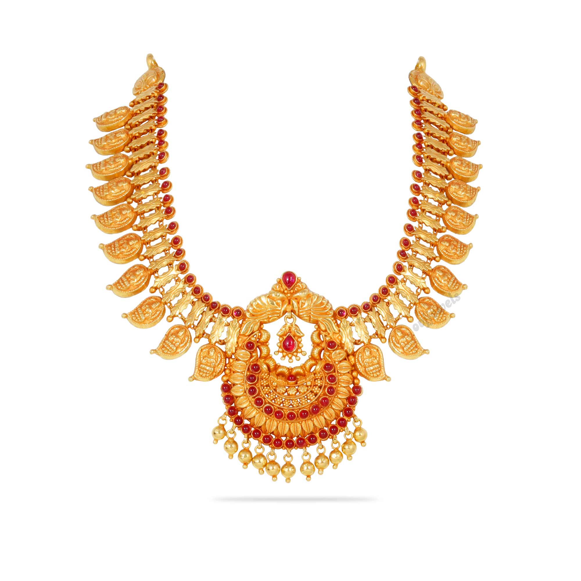 This short necklace is crafted with mango and lakshmi designed in a blooming formation.