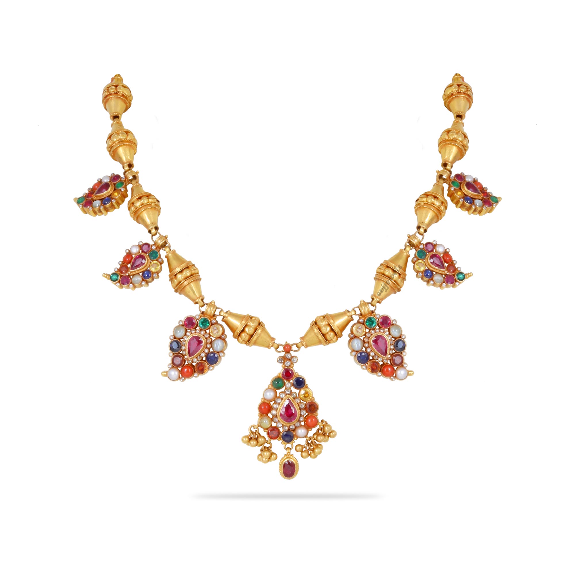 Fascinating 22k gold necklace for your cutie which is highlighted with navarathna stones.
