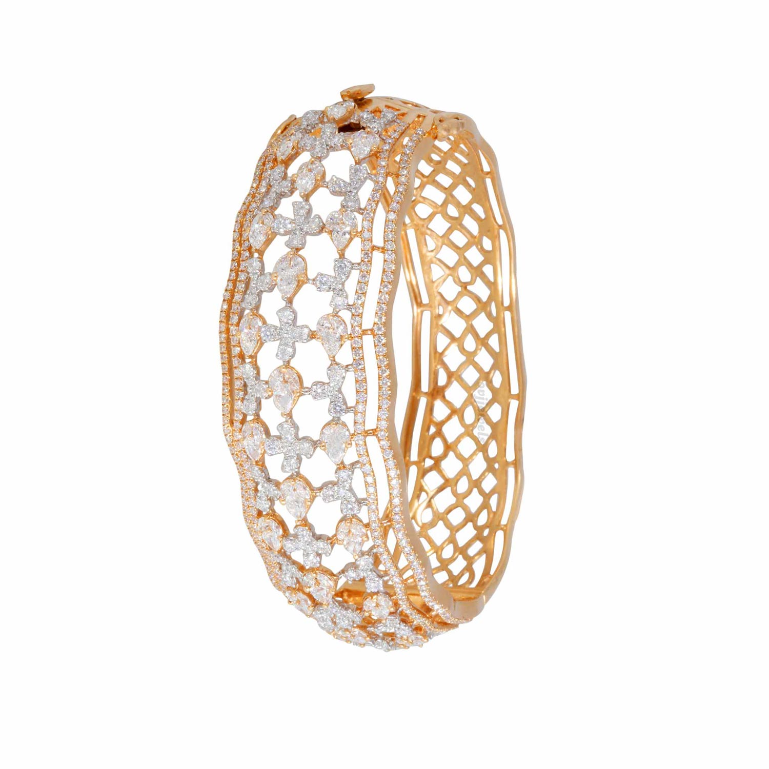 Flaunt an angelic shine with this 18k gold bangle with round brilliant diamonds.