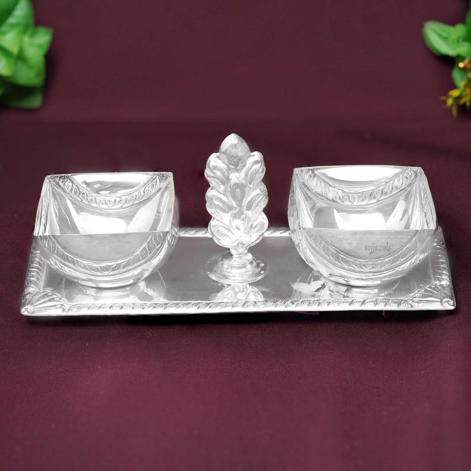 The Silver Sandhana Kumkum Kinnam is a symbol of devotion, spirituality, and artistic craftsmanship. Its beautiful silver construction, intricate design, and cultural significance make it a cherished item that enhances religious rituals and adds an element of grace to any setting.