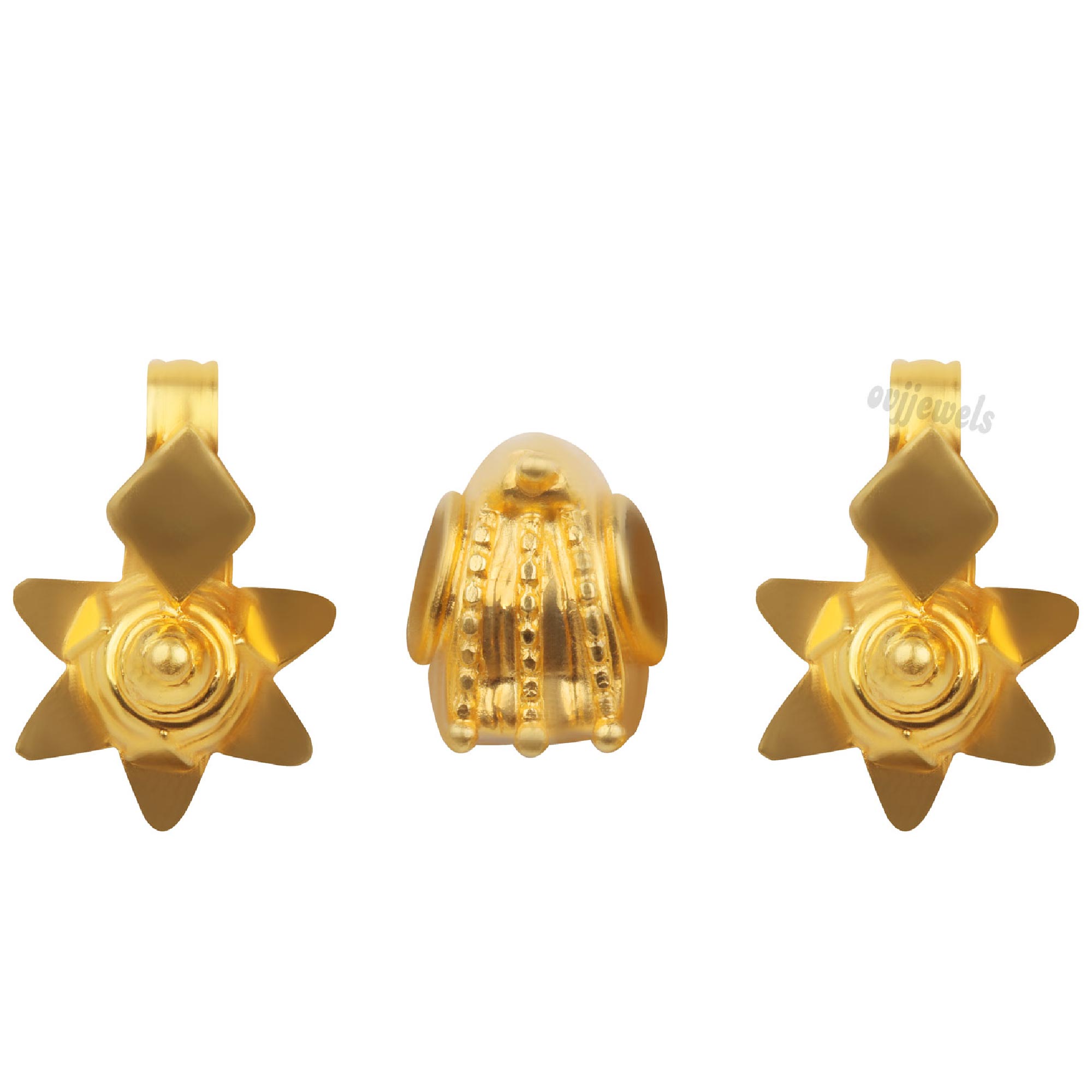 A promonent feature in any Saiva Pillai mangalyam this 22k gold Siragu Thali embellishment is crafted to inspire prosperity.