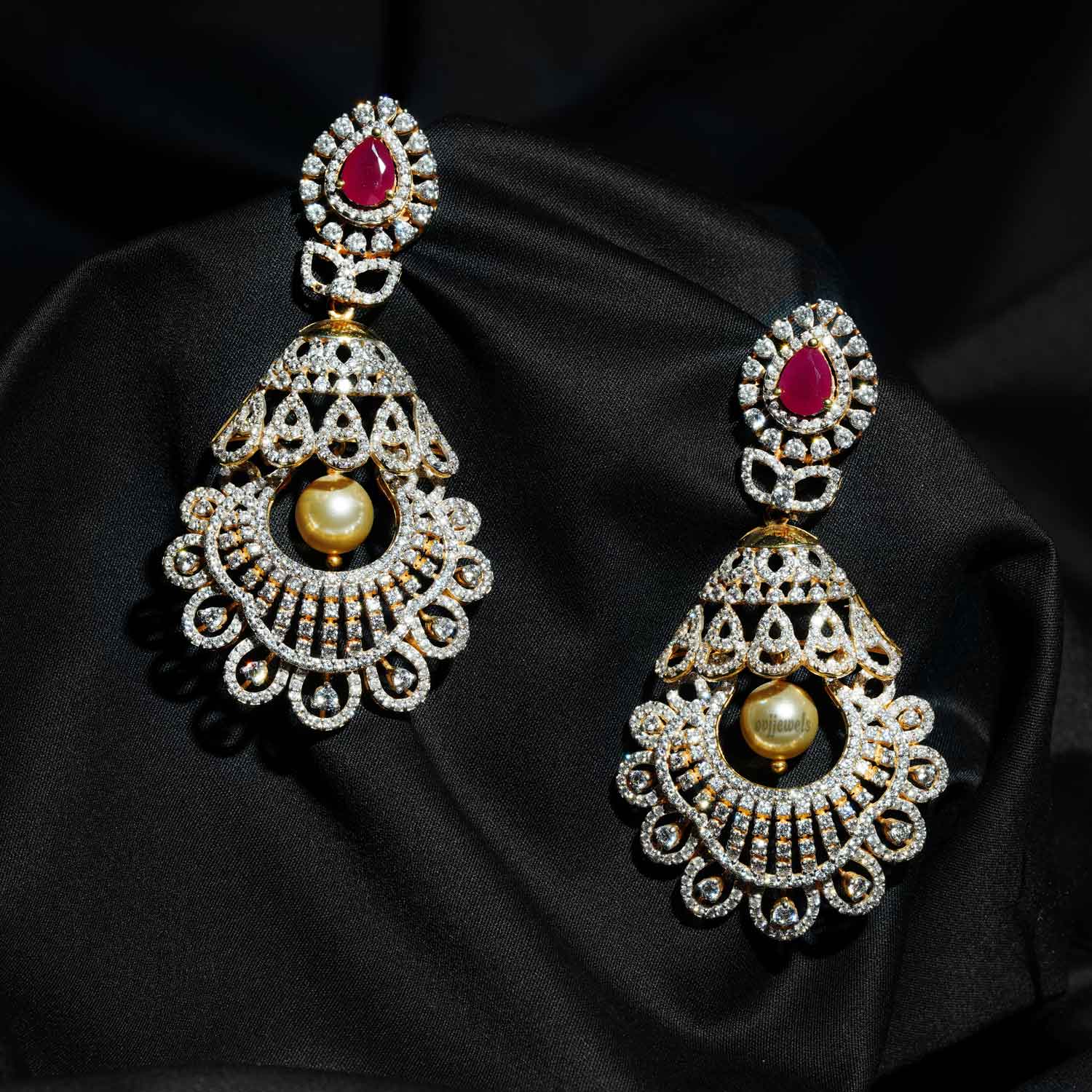 These 22k yellow gold casting drops are studded with swarovski stones kemp, pearls which will be a perfect pick for your wedding wear.