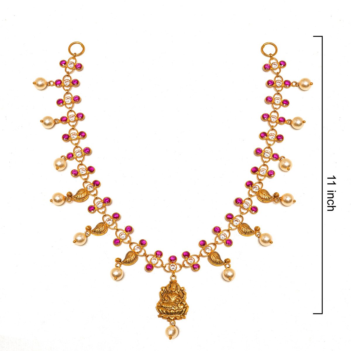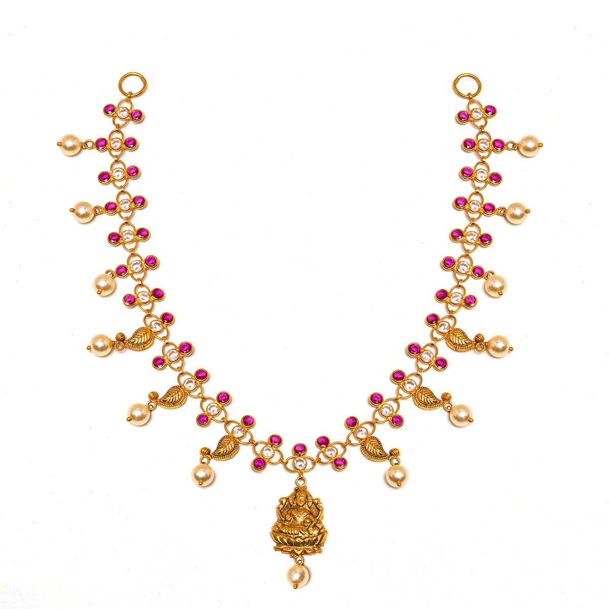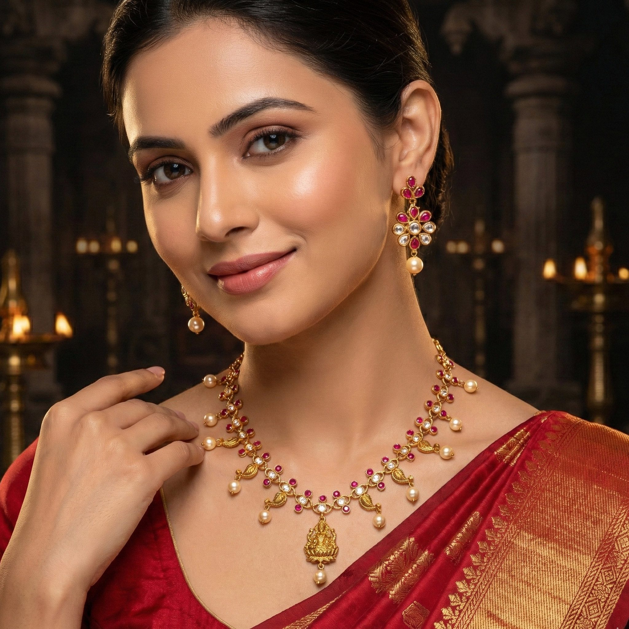 Be the first to review “Traditional 916 Gold Lakshmi Necklace with Ruby-Pink Stones & Pearls