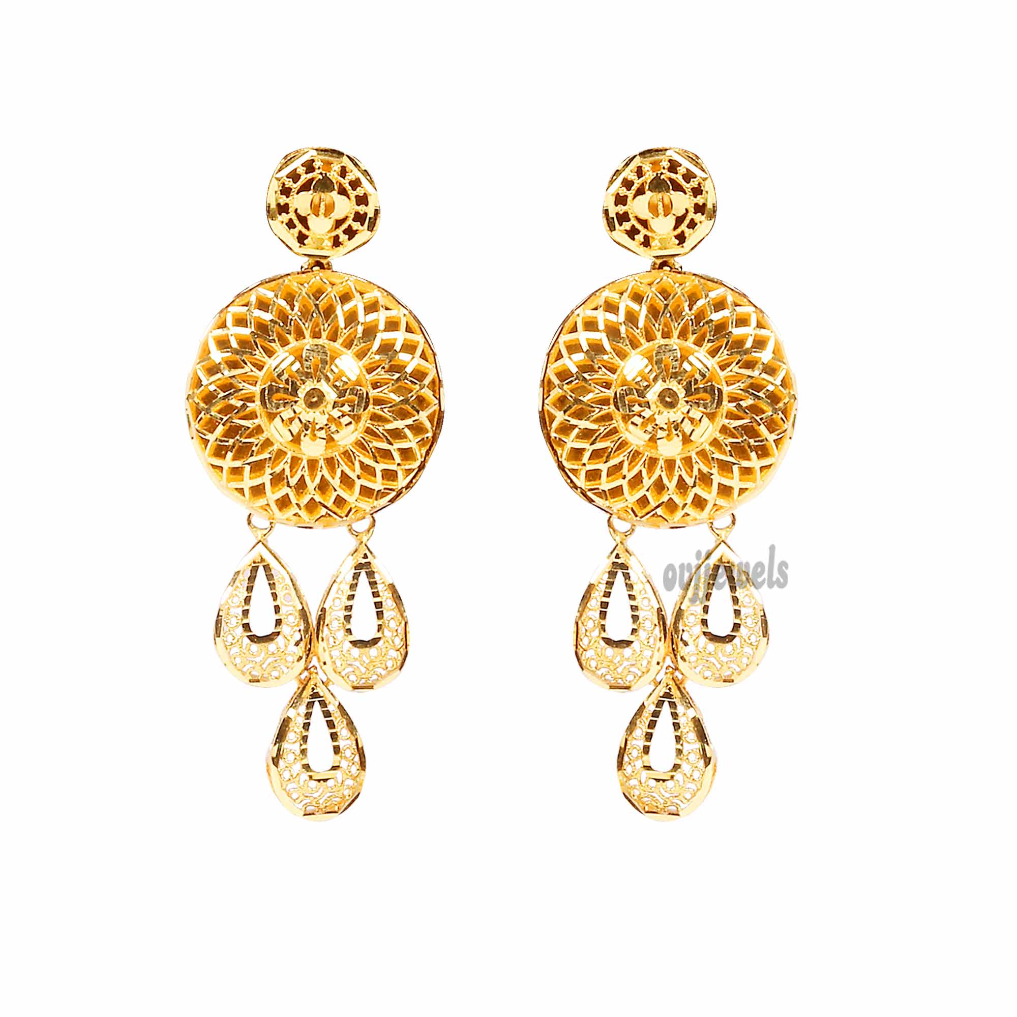 These gorgeous gold earrings embedded with shine an unusually cut design that you may have never come across.