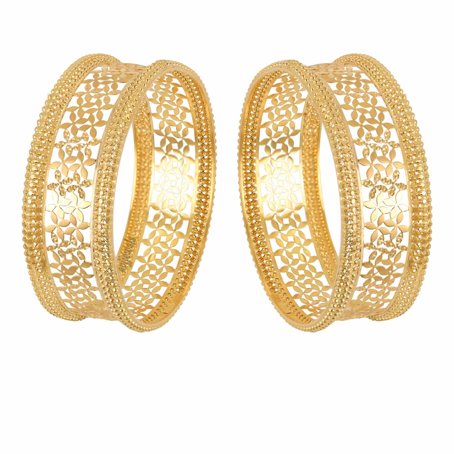 These 22kt yellow gold bangles studded with Golden balls are a beautiful piece of art to dress up your lovely hands. Add these glorious Kada bangles to be all-time ethnic ready.